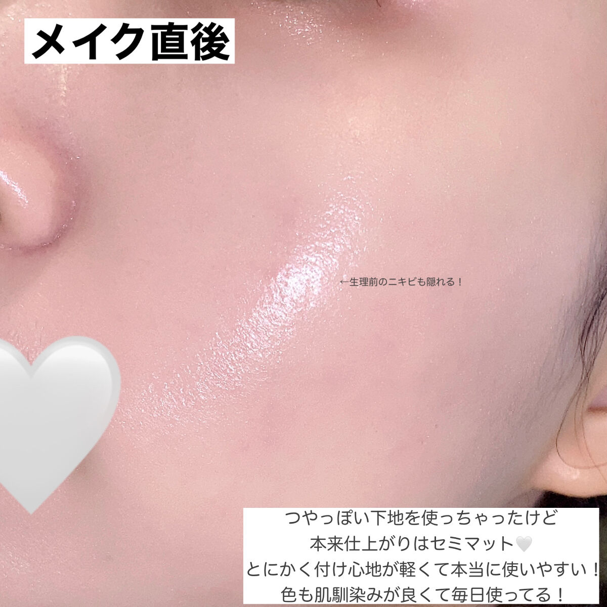 まずトーンアップがすごい! とんでもなくお肌を白く見せてくれます✨ お肌にずっと馴染んで元の肌の色をそのまま明るくしたかのような仕上がりになってくれる 薄く塗るだけでもしっかり毛穴をカバーしてくれるの!! 地味にカバー力があるからまじでこれだけでいい! ベタベタしないから使いやすいしまだ花粉でマスクが手放せない人にもおすすめ! この上からファンデを使いたい人にも◎ メイクノリが良くなる気がするからファンデ使っても厚塗り感が出ないのにお肌はトーンアップしてみえて、すごく綺麗に仕上がる! 内側から滲み出るような透明感肌になる!(伝わって!!) 本当におすすめです
