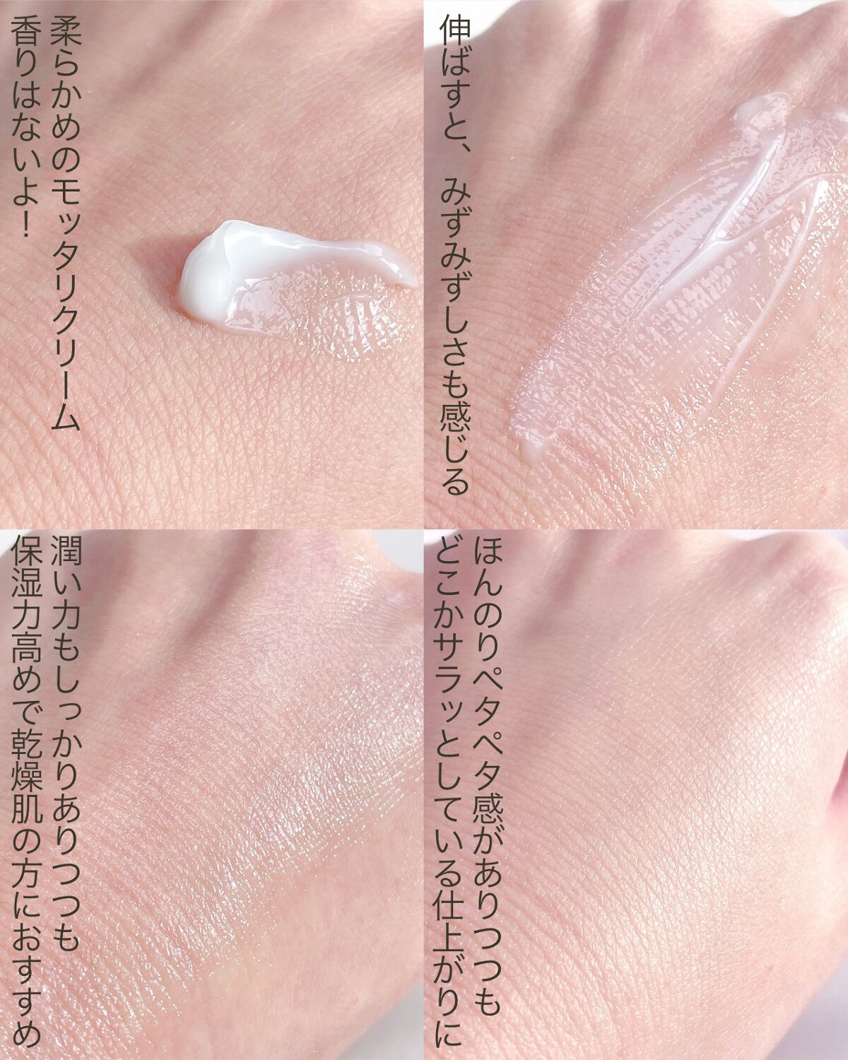 | テクスチャーはとろみのあるリッチなクリームで、肌にのせるととろけるように広がります。 | 詳細を見る | ||