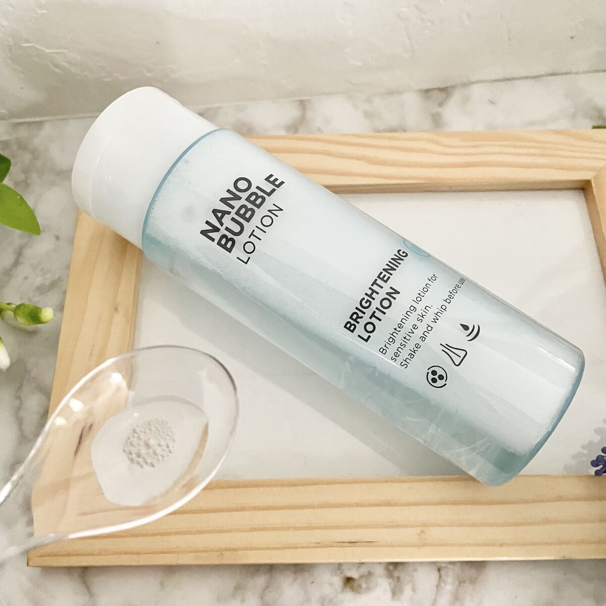 「糖」「ミネラル」を深く浸透させるナノバブルローションです。 とろみのあるテクスチャーで、スーッと肌に伸び広がり、馴染みがいいです。 しっとりとしたテクスチャーだから、保湿効果を期待できそう。