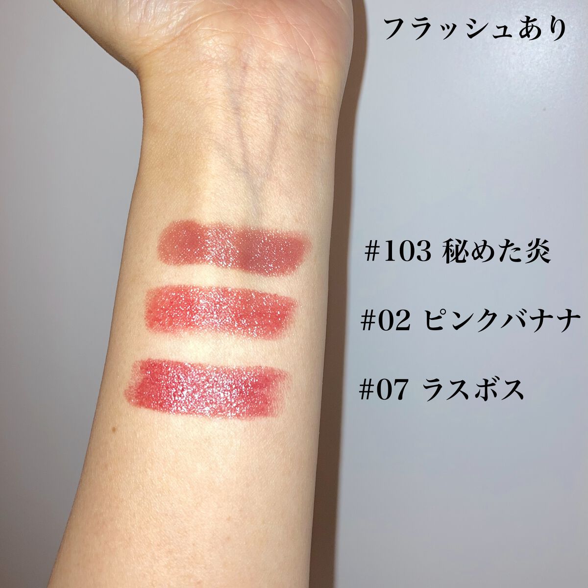 - <01 欲望の塊> テトライソステアリン酸ジペンタエリスリチル、トリ(カプリル酸/カプリン酸)グリセリル、オクチルドデカノール、ラウロイルグルタミン酸ジ(フィトステリル/オクチルドデシル)、ビスアルキル(C16-18)グリセリルウンデシルジメチコン、イソノナン酸イソトリデシル、水添ポリイソブテン、ラウロイルグルタミン酸ジ(オクチルドデシル/フィトステリル/ベヘニル)、パラフィン、合成ワックス、ダイマージリノール酸(フィトステリル/イソステアリル/セチル/ステアリル/ベヘニル)、マイクロクリスタリンワックス、水添マイクロクリスタリンワックス、ヒドロキシステアリン酸エチルヘキシル、トコフェロール、ホホバ種子油、オリーブ果実油、アーモンド油、(エチレン/プロピレン)コポリマー、ポリエチレン、ジメチコン、(+/-)(チタン/酸化チタン)焼結物、マイカ、ラウロイルアスパラギン酸Na、ラウロイルリシン、塩化亜鉛、酸化チタン、酸化鉄、水酸化Al、硫酸Ba、トリイソステアリン酸イソプロピルチタン、酸化スズ、ホウケイ酸(Ca/Al)、合成フルオロフロゴパイト、黄4、黄5、赤104(1)、赤201、赤202 <02 ピンクバナナ> テトライソステアリン酸ジペンタエリスリチル、トリ(カプリル酸/カプリン酸)グリセリル、オクチルドデカノール、ラウロイルグルタミン酸ジ(フィトステリル/オクチルドデシル)、ビスアルキル(C16-18)グリセリルウンデシルジメチコン、イソノナン酸イソトリデシル、水添ポリイソブテン、ラウロイルグルタミン酸ジ(オクチルドデシル/フィトステリル/ベヘニル)、パラフィン、合成ワックス、ダイマージリノール酸(フィトステリル/イソステアリル/セチル/ステアリル/ベヘニル)、マイクロクリスタリンワックス、水添マイクロクリスタリンワックス、ヒドロキシステアリン酸エチルヘキシル、トコフェロール、ホホバ種子油、オリーブ果実油、アーモンド油、(エチレン/プロピレン)コポリマー、ポリエチレン、ジメチコン、(+/-)(チタン/酸化チタン)焼結物、マイカ、ラウロイルアスパラギン酸Na、ラウロイルリシン、塩化亜鉛、酸化チタン、酸化鉄、水酸化Al、硫酸Ba、トリイソステアリン酸イソプロピルチタン、酸化スズ、ホウケイ酸(Ca/Al)、合成フルオロフロゴパイト、黄4、黄5、赤104(1)、赤201、赤202 <03 陽炎> テトライソステアリン酸ジペンタエリスリチル、トリ(カプリル酸/カプリン酸)グリセリル、オクチルドデカノール、ラウロイルグルタミン酸ジ(フィトステリル/オクチルドデシル)、ビスアルキル(C16-18)グリセリルウンデシルジメチコン、イソノナン酸イソトリデシル、水添ポリイソブテン、ラウロイルグルタミン酸ジ(オクチルドデシル/フィトステリル/ベヘニル)、パラフィン、合成ワックス、ダイマージリノール酸(フィトステリル/イソステアリル/セチル/ステアリル/ベヘニル)、マイクロクリスタリンワックス、水添マイクロクリスタリンワックス、ヒドロキシステアリン酸エチルヘキシル、トコフェロール、ホホバ種子油、オリーブ果実油、アーモンド油、(エチレン/プロピレン)コポリマー、ポリエチレン、ジメチコン、(+/-)(チタン/酸化チタン)焼結物、マイカ、ラウロイルアスパラギン酸Na、ラウロイルリシン、塩化亜鉛、酸化チタン、酸化鉄、水酸化Al、硫酸Ba、トリイソステアリン酸イソプロピルチタン、酸化スズ、ホウケイ酸(Ca/Al)、合成フルオロフロゴパイト、黄4、黄5、赤104(1)、赤201、赤202 <04 パンプキンワイン> テトライソステアリン酸ジペンタエリスリチル、トリ(カプリル酸/カプリン酸)グリセリル、オクチルドデカノール、ラウロイルグルタミン酸ジ(フィトステリル/オクチルドデシル)、ビスアルキル(C16-18)グリセリルウンデシルジメチコン、イソノナン酸イソトリデシル、水添ポリイソブテン、ラウロイルグルタミン酸ジ(オクチルドデシル/フィトステリル/ベヘニル)、パラフィン、合成ワックス、ダイマージリノール酸(フィトステリル/イソステアリル/セチル/ステアリル/ベヘニル)、マイクロクリスタリンワックス、水添マイクロクリスタリンワックス、ヒドロキシステアリン酸エチルヘキシル、トコフェロール、ホホバ種子油、オリーブ果実油、アーモンド油、(エチレン/プロピレン)コポリマー、ポリエチレン、ジメチコン、(+/-)(チタン/酸化チタン)焼結物、マイカ、ラウロイルアスパラギン酸Na、ラウロイルリシン、塩化亜鉛、酸化チタン、酸化鉄、水酸化Al、硫酸Ba、トリイソステアリン酸イソプロピルチタン、酸化スズ、ホウケイ酸(Ca/Al)、合成フルオロフロゴパイト、黄4、黄5、赤104(1)、赤201、赤202 <05 ダークフィグ> テトライソステアリン酸ジペンタエリスリチル、トリ(カプリル酸/カプリン酸)グリセリル、オクチルドデカノール、ラウロイルグルタミン酸ジ(フィトステリル/オクチルドデシル)、ビスアルキル(C16-18)グリセリルウンデシルジメチコン、イソノナン酸イソトリデシル、水添ポリイソブテン、ラウロイルグルタミン酸ジ(オクチルドデシル/フィトステリル/ベヘニル)、