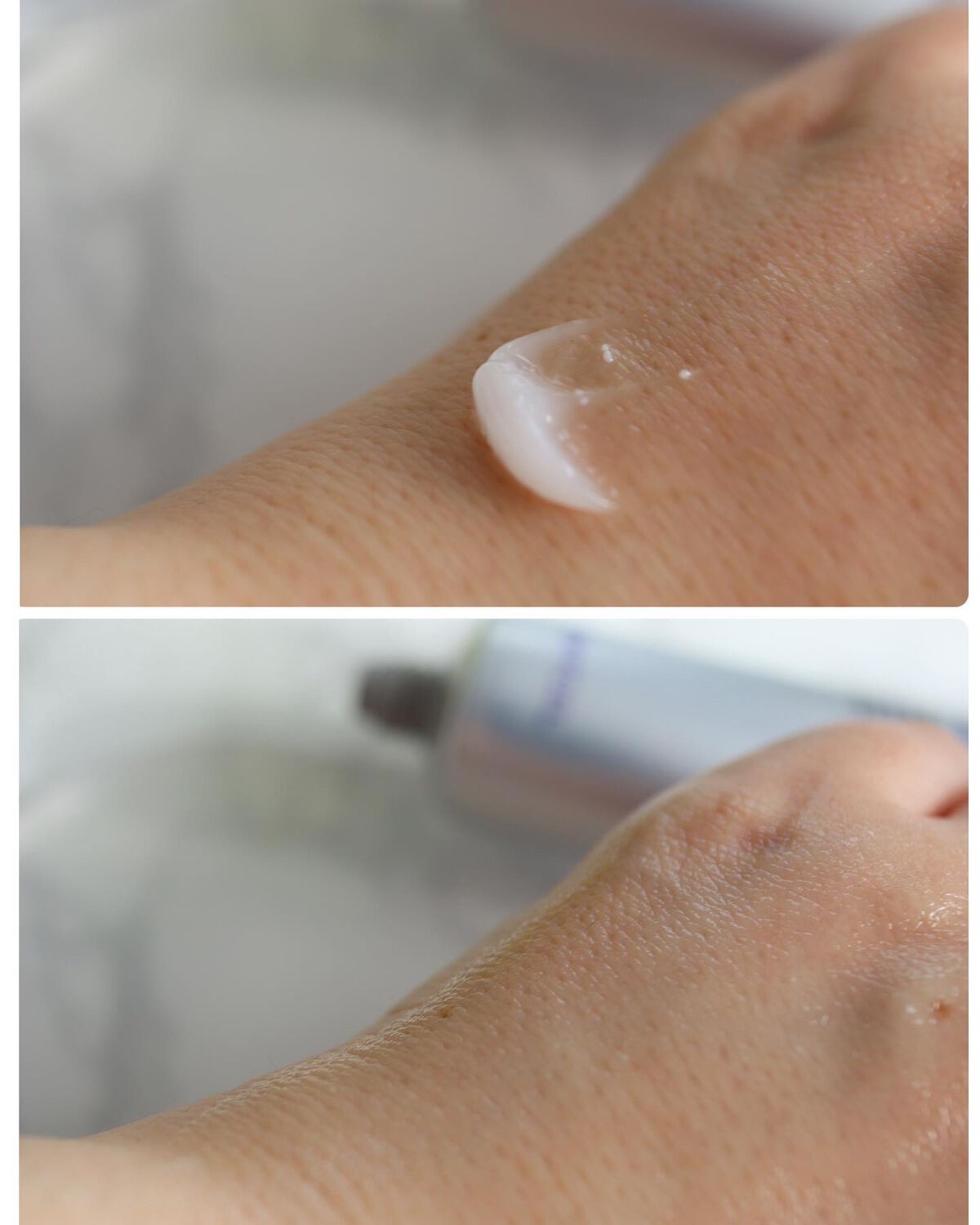 贅沢に美容成分を配合しているクリームは思ったより軽く、みずみずしく、素肌によくのびます。べとつきはしないかな。 プッシュしてエアレスボトルから新鮮なクリームが出てくるから量も調節しやすい🙆♀️ クリームはジェルのようにみずみずしいよ。少し高級化粧品によくあるような独特の香りがします。 ピンク色のエアーレスのボトル プッシュするとクリームが出てきます。