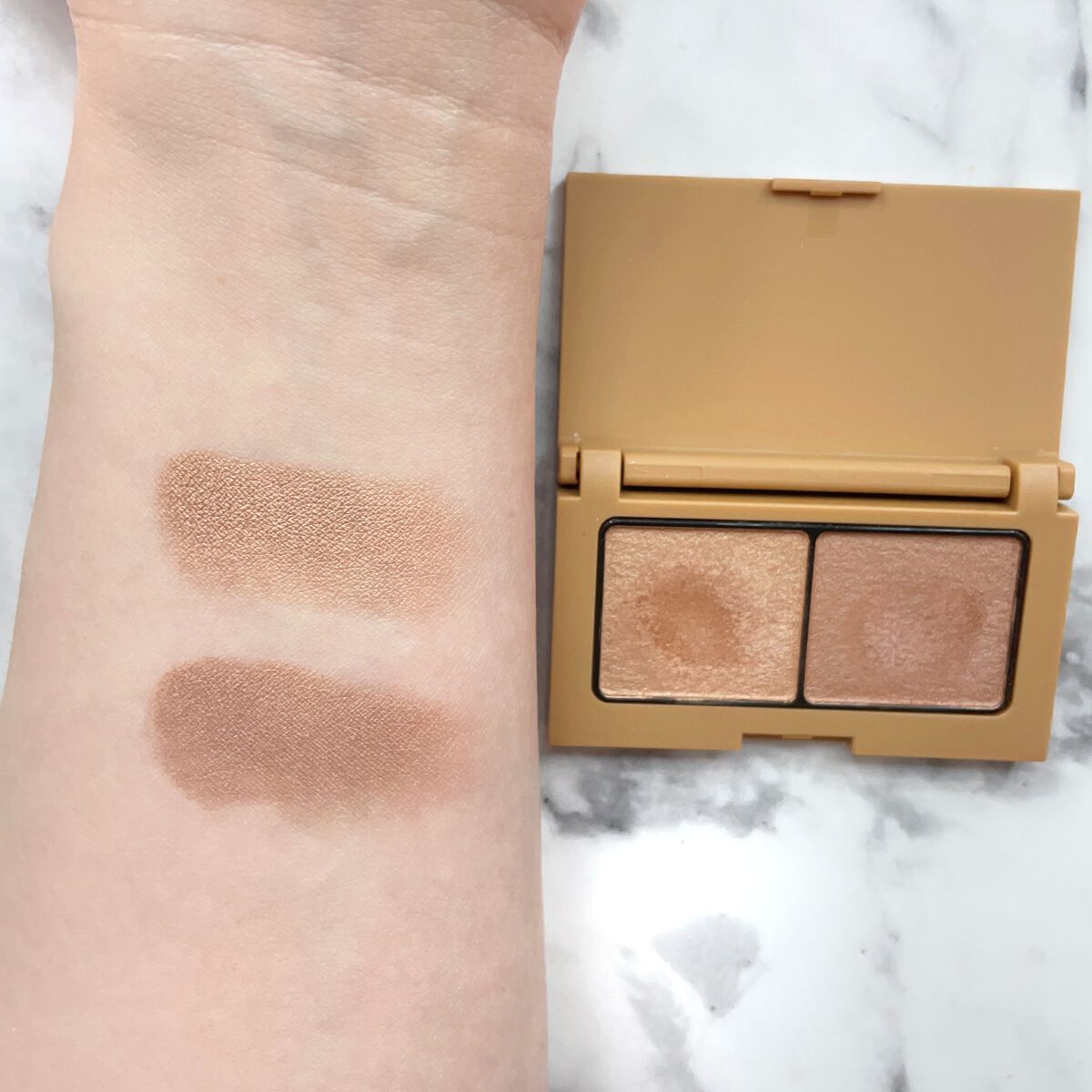 ツヤとマット2つの質感で目もとに深みを演出するデュオアイシャドウ。 なめらかなツヤのシルクカラーとぬくもりマットなカシミヤカラー マットカラーは黄みと赤みバランスが絶妙な誰にでも似合うニュートラルなベージュとほんのりピンクに輝くラメカラー 2色だから時短にもなるしズボラさんにもおすすめ︎👍🏻