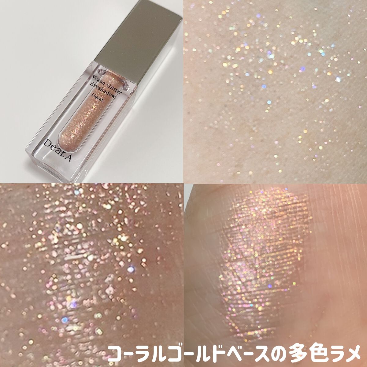 #PRDear.A様よりご提供頂きましたDear.AVeganGlitterEyeshadow1.4g☑00.heaven☑01.mauve☑02.sunbeam密着ウォーターベースのキラキラとした多彩な偏光ラメやスパンコールの煌めきが可愛い...