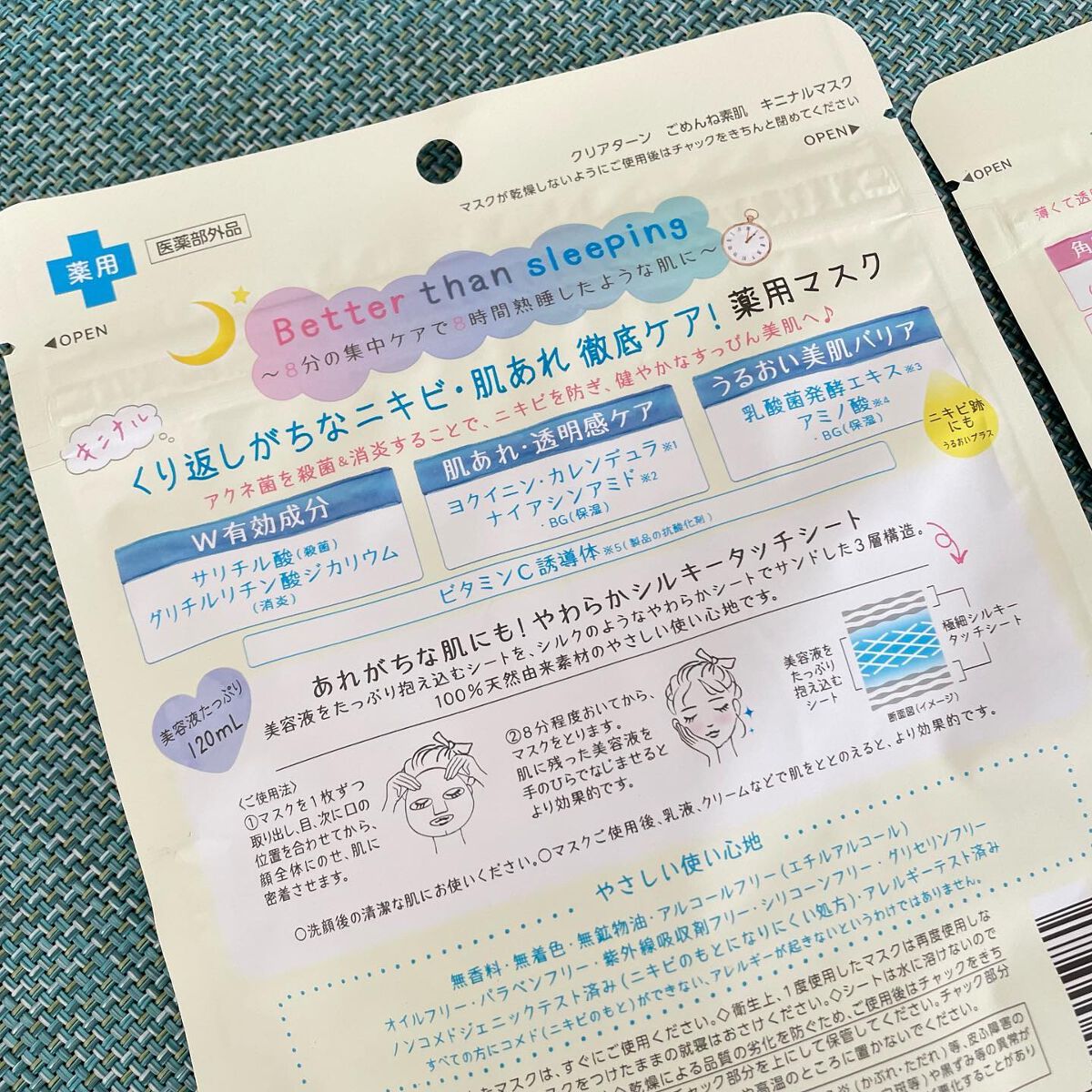 ニキビ・肌あれを徹底ケア ニキビのもとになりやすいオイル不使用のみずみずしい美容液。 密着力も高く、剥がれにくい! シートマスク自体は切り込みなどは最低限で顔に貼りやすかったし密着力もありますが 即効性はなくまだニキビはあります 残念ですが期待を上回ることはなかったです🥲