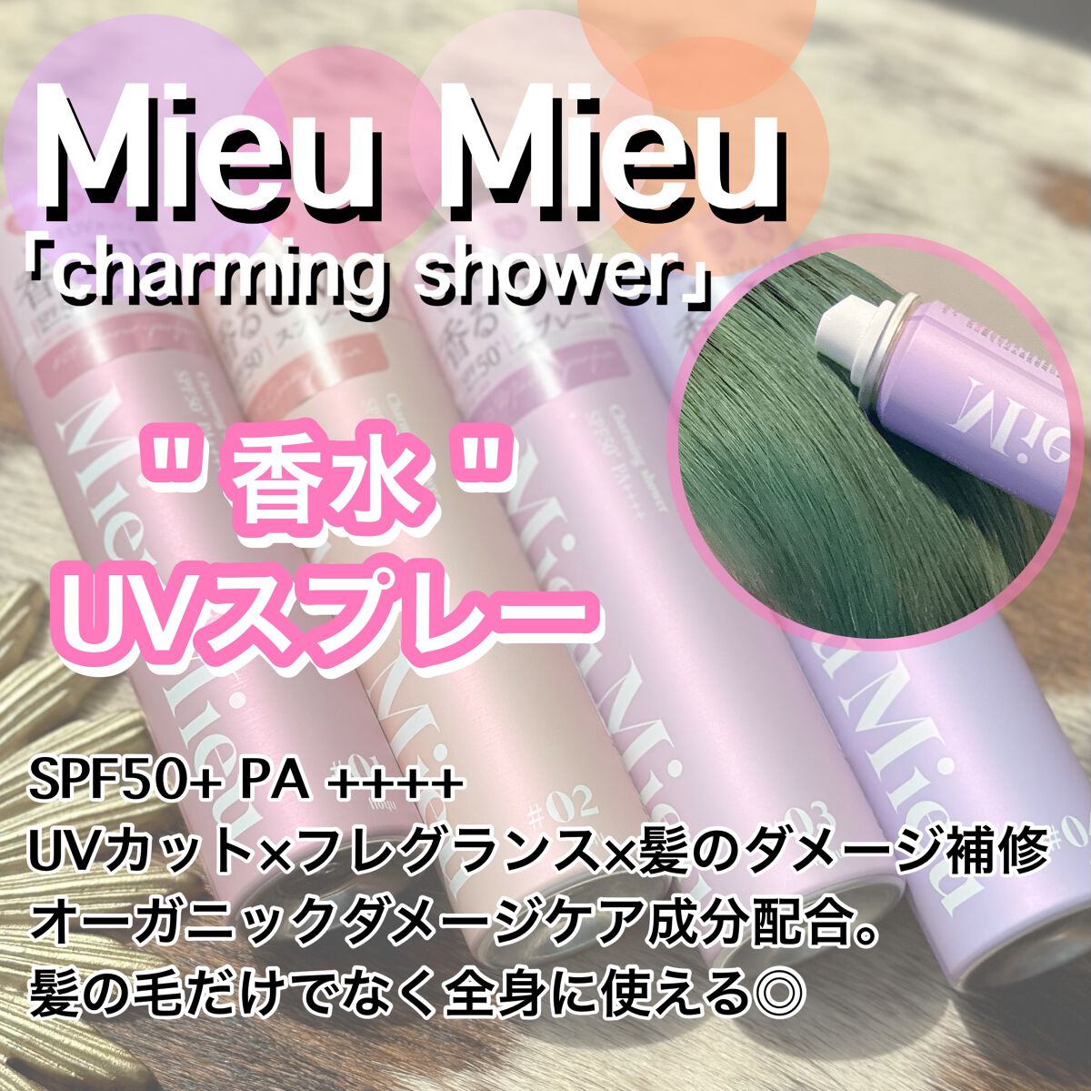 ᝰ✍︎꙳⋆MieuMieuCharmingshower✔︎日焼け止め×フレグランス×髪のダメージケア 3つが一度に叶う✨✔︎SPF50+PA++++✔︎オーガニックダメージケア成分※配合。※カニナバラ果実エキス小さめのパッケージなので持ちやす...