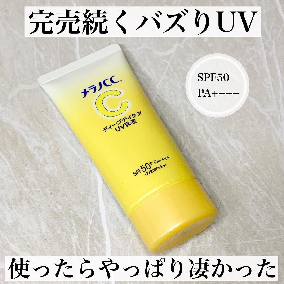 メラノCCディープケア乳液〈日焼け止めミルク〉 SPF50+・PA++++UV耐水性☆☆持続型ビタミンC誘導体(うるおい成分)配合で日中の日焼けによるしみを予防パッと明るく見せる仕上がりで化粧下地としても使えますが顔が敏感なときがあるので私は...