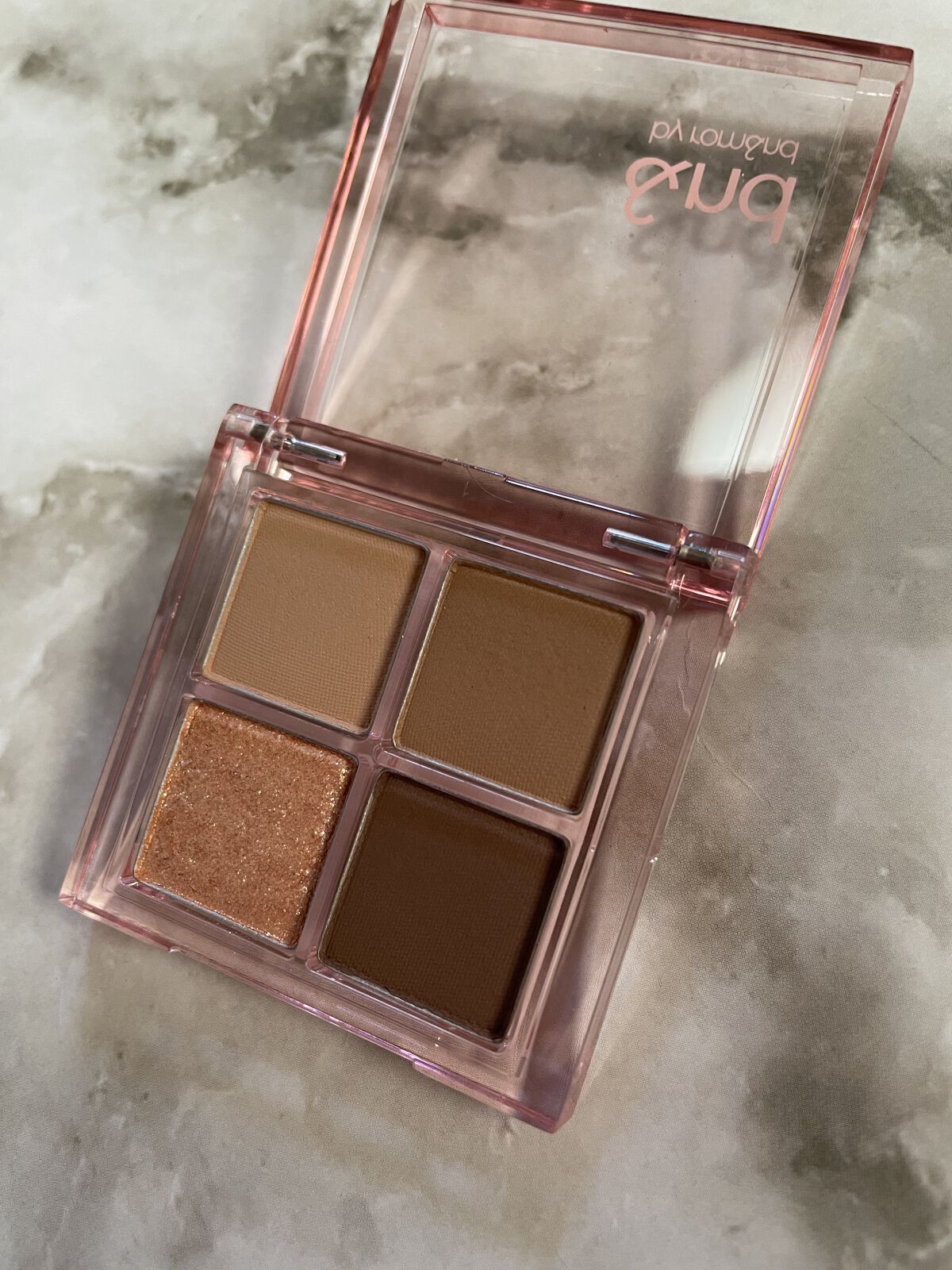 柔らかくて密着力の高いテクスチャーでマット3色ラメ1色のアイシャドウきなっています🥰 ソフトブラウンは大人っぽいシックなブラウン系の印象を演出できます🫶 明るさが欲しい方はアップルシナモンの方が良いかも🤔 甘めが好きな方はローズフォグが◎