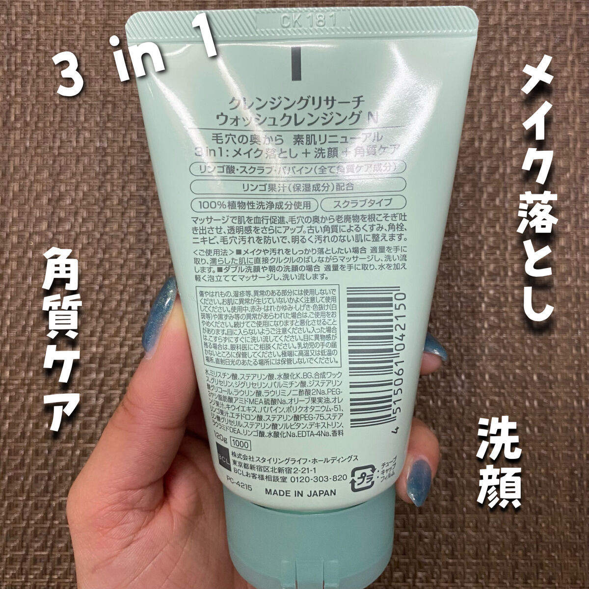 クレンジングリサーチウォッシュクレンジングN120g¥1,100・メイク落とし・洗顔・角質ケアできる3in1です✨️・メイク落としもできる洗顔で便利です☺️・毛穴ケアにも良いみたいです😇・スクラブ入りでつぶつぶが入ってました!・りんごの良い香...