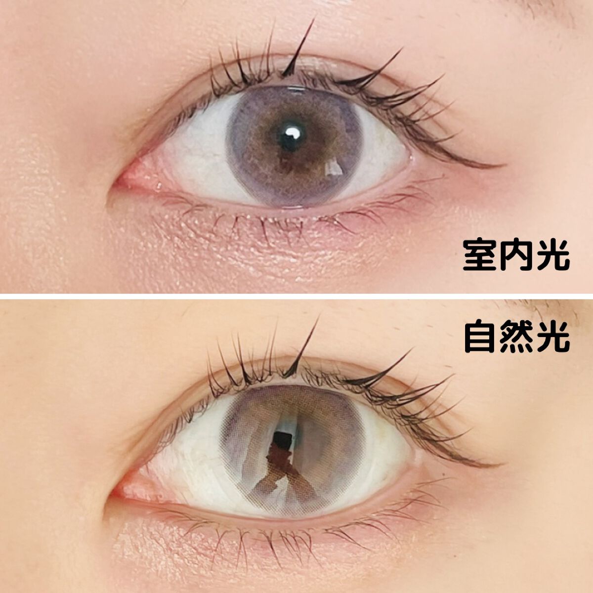 洗練されたロマンチックなラベンダーカラー レンズがかなり薄めでふんわりしたカラー。 実際付けてみるとミステリアスなあざとさ。 裸眼が明るめの私が使うとブルーグレーっぽくも見える。 大きめのサイズ感でも意外と馴染んでくれる。