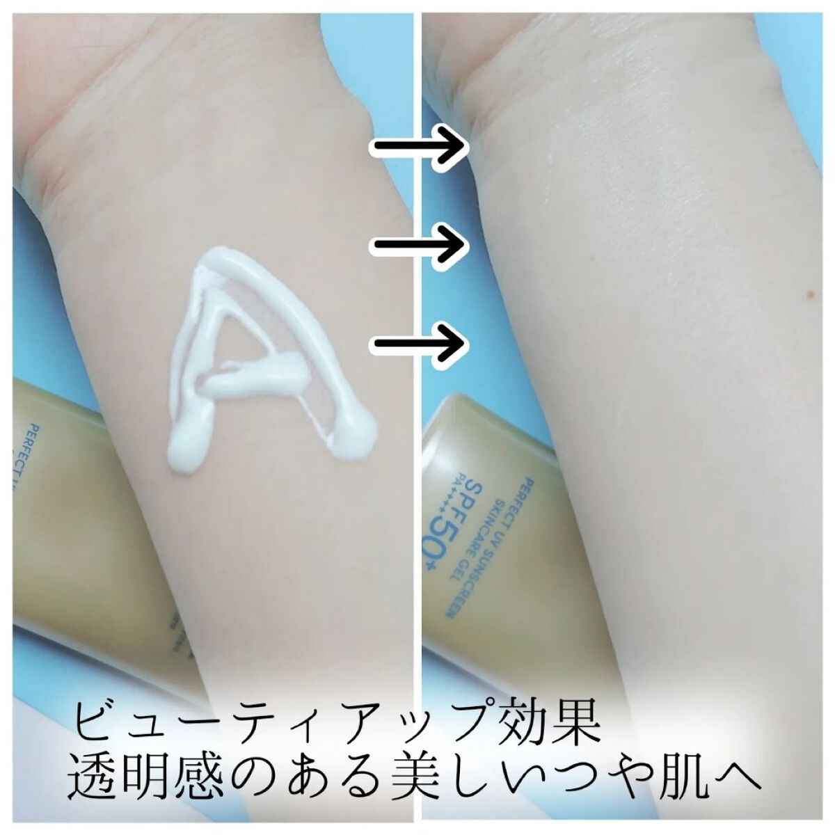 - SPF50+ ・ PA++++ 顔・ から だ用 汗、水、そして空気中の水分※10 に反応してUVブロック膜が強くなる技術搭載 毎日つけたくなる みずみずしいスキンケア UVジェル ※10 暑い時期の高湿度環境 〇汗、水、そして空気中の水分に自動的に反応して 、 UVブロック膜が 強くなります 。-オートブースタ ー 技術 〇透明美肌仕上げ-ビューティ ー アップ 〇スキンケア成分50%配合 〇保湿成分:コラーゲン、スーパーヒアルロン酸※9、グリセリン ※9 アセチルヒアルロン酸Na 〇長時間保湿持続効果 〇スーパーウォータープルーフ 〇マスク蒸れ対応 〇耐こすれ 〇化粧下地効果 〇せっけんで落とせる 〇みずみずしいジェル 〇生まれ変わった、心地よいフルーティーフローラルの香り 〇大気中に浮遊する微粒子、PM2.5などから肌を保護します。 -微粒子付着防止対応 〇海に流れ出にくいオーシャンフレンドリー処方※6 ※6 自社品内の耐水処方でない商品と比較 〇植物由来の原料を一部使用した袋 〇無着色・ノンコメドジェニックテスト・アレルギーテスト済み (全ての方にニキビができない、アレルギーが起きないというわけではありません)