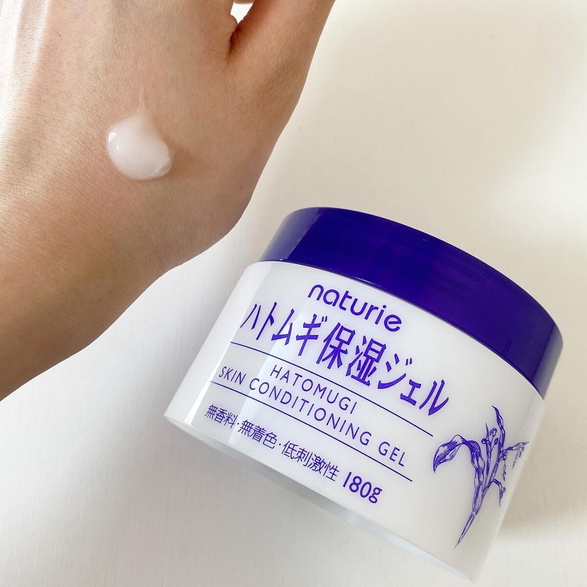 天然植物由来の保湿成分"ハトムギエキス"を従来品より20%増量 またエキスの抽出方法を変更したことにより、アミノ酸の濃度は4倍、今までよりも保湿力アップ シャバシャバでみずみずしいテクスチャー、肌にグングン浸透してくれます👏 私は重ね付けしてたっぷり保湿したり、コットンにヒタヒタに染み込ませて贅沢にコットンパックとして使ったりしています💡 プルプルで柔らかく軽いテクスチャーのジェルです💡 みずみずしくとても伸びが良く、たっぷり塗っても全くベタつかないのがお気に入り⭐️