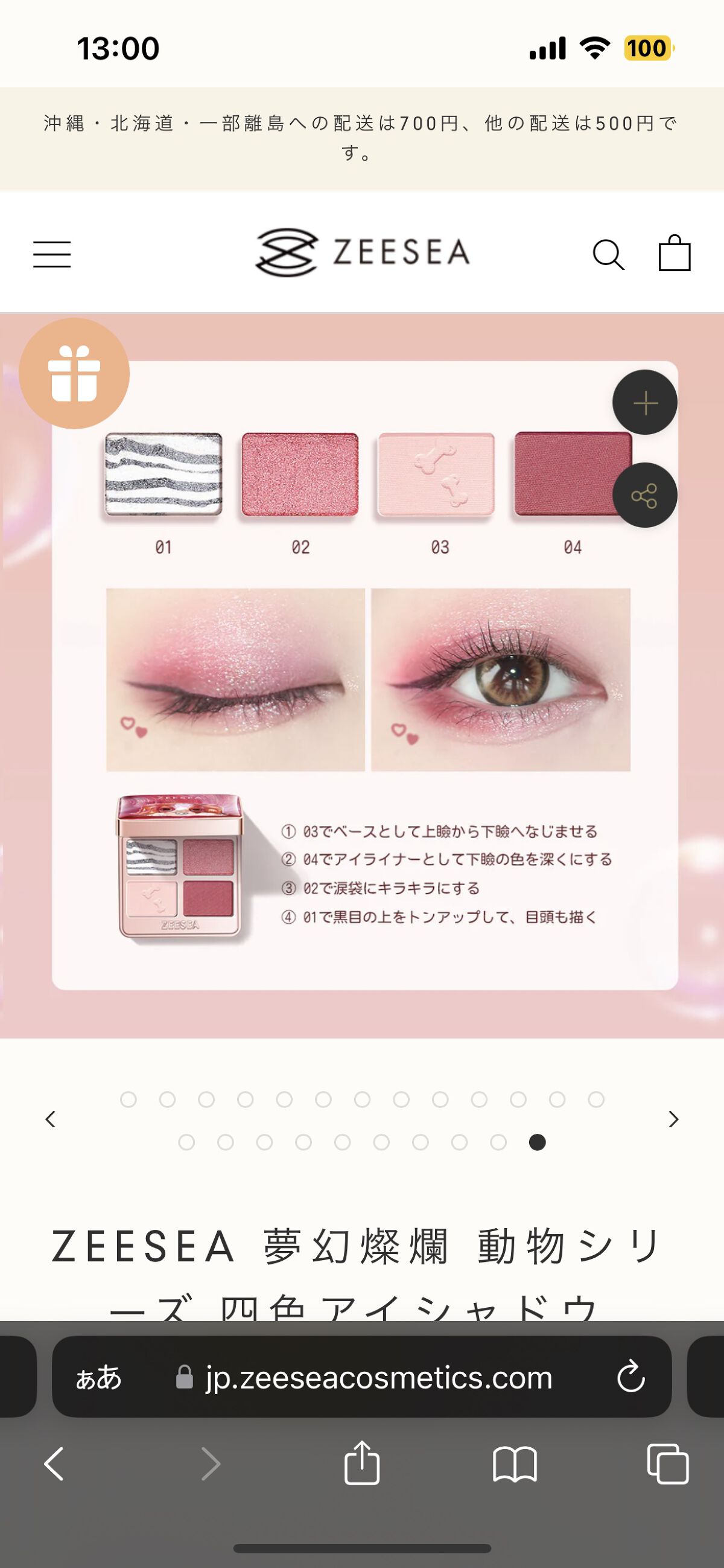 ZEESEA アニマルアイシャドウ(4シェード) | 1,580円 |