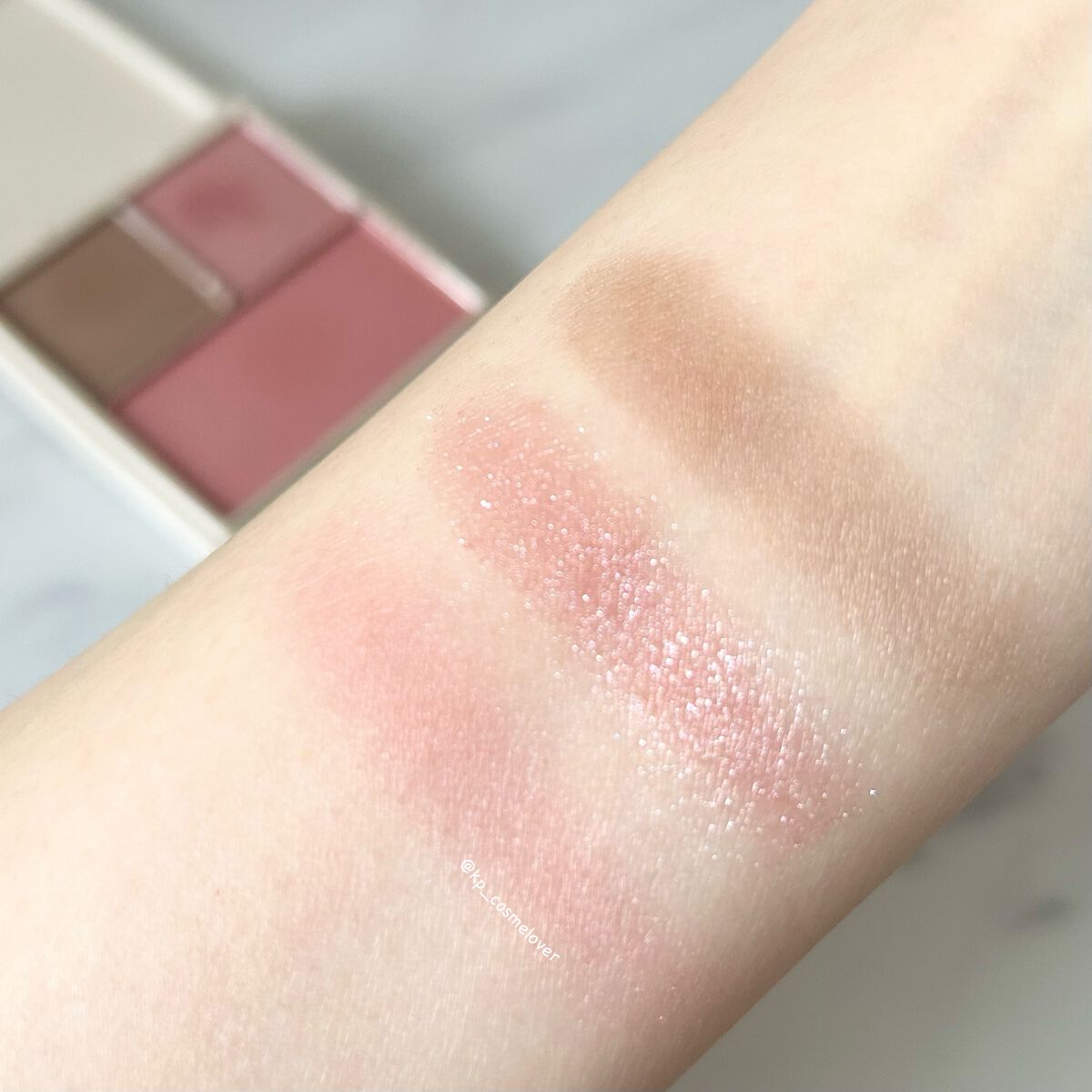 こちらは日本では店頭販売されていなかったので、色味を確認出来ず購入を躊躇していたのですが、先日PLAZAで限定のミニサイズが発売されて💓 手元で色味を確認したところ、好みドンピシャでした😍😍 ミニサイズを買うつもりでいたのですが、あまりに色味が気に入ったので通常サイズをAmazonでポチりました😇 くすみはあまり得意ではないですが、このパレットのくすみ具合はちょうど良いです✨ そして何よりラメが可愛い😭ピンクやイエロー、ブルーの多色ラメがキラッキラです🥺 rom&ndのアイテムは初めてでしたが、粉飛びやラメ落ちもなく、持ちも良くて最高でした🤤