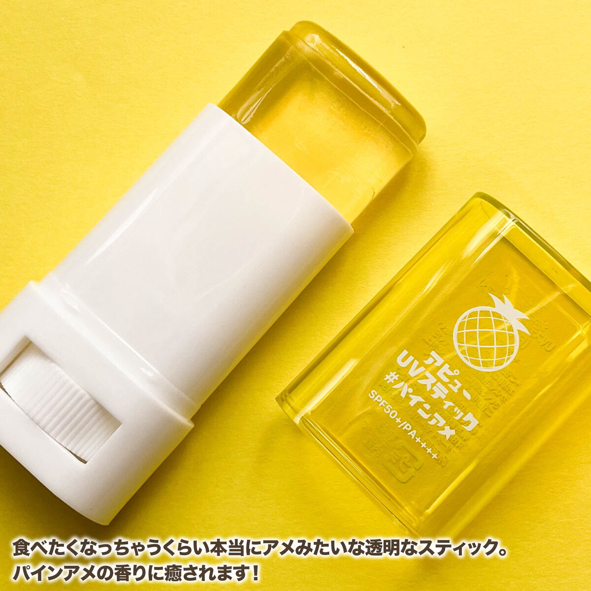 - 選べる3種の「香り」と「カラー」でジューシーな果実感が楽しめるUVスティック。 SPF50+/PA++++の国内最高基準値。 撥水ベールにより汗水に強い高い撥水力を実現。 透明スティックだから衣服や手を汚さず、白浮きしにくく素肌感を残したナチュラルなツヤ肌へと導きます。 さらさらオイルが配合されていることにより、摩擦の少ないマイルドタッチでなめらかな塗り心地。 ベタつきやきしみを感じにくい使用感が特徴です。 美容保湿成分ナイアシンアミドや、各種ごとに異なる果実由来の保湿成分を配合。 コンパクト設計のため持ち運びがしやすく、お出かけ先など気になったらどこでもUVケアが可能。 さらにメイクの上からも使え、日中の塗り直しにも便利です。
