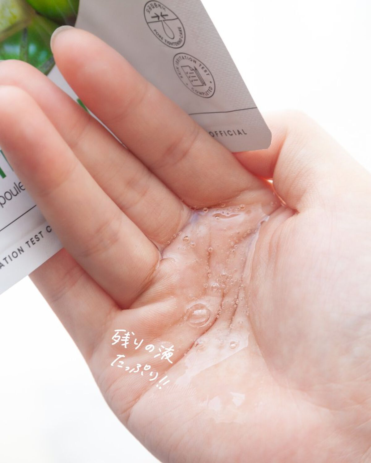 美容液がヒタヒタで20分くらいしてはがしてもヒタヒタで全然乾いてない🥺 ユーカリ→鎮静 グリーントマト→毛穴 ブライトニング→雪肌 カメリア→ハリ弾力 ホワイトミルク→栄養