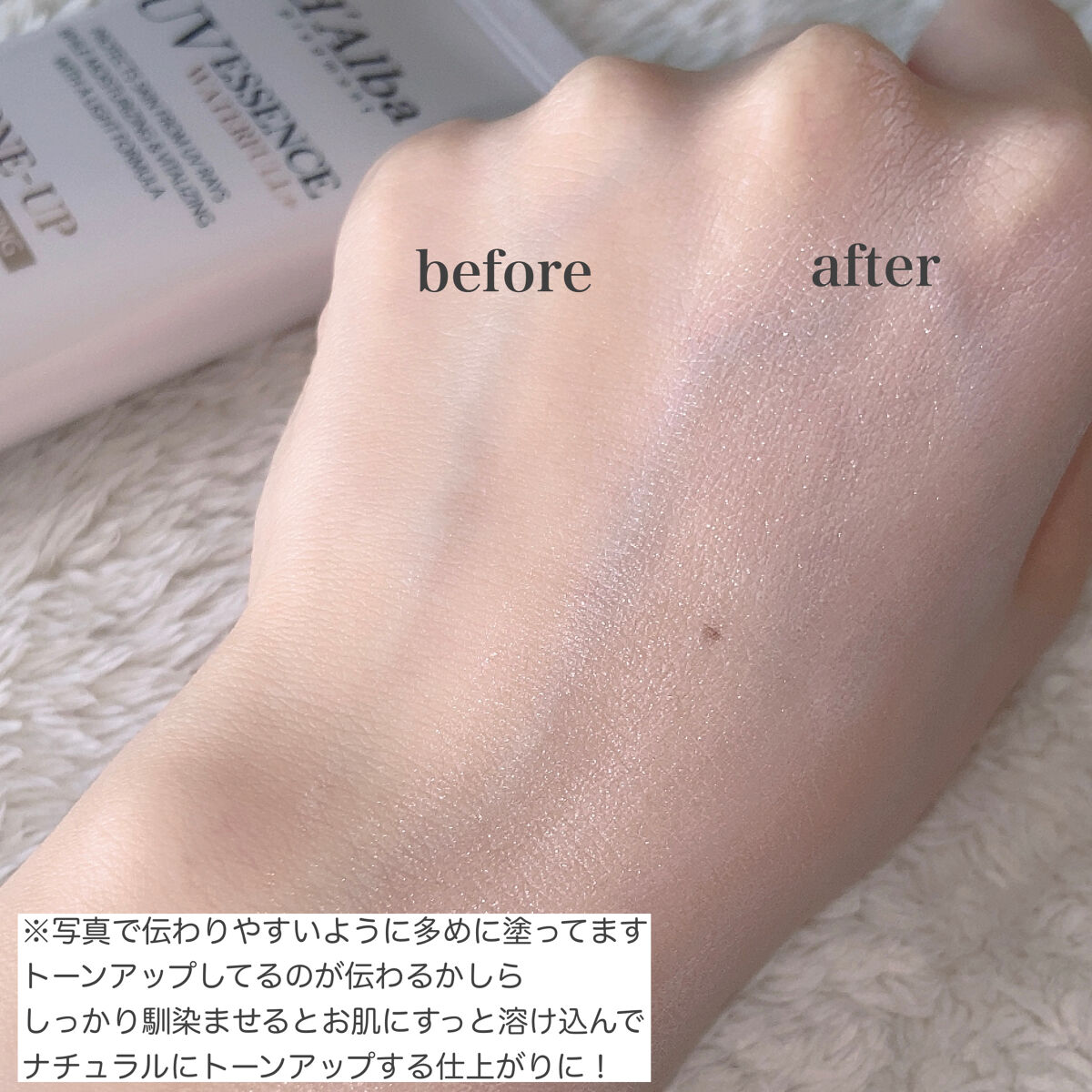 まずトーンアップがすごい! とんでもなくお肌を白く見せてくれます✨ お肌にずっと馴染んで元の肌の色をそのまま明るくしたかのような仕上がりになってくれる 薄く塗るだけでもしっかり毛穴をカバーしてくれるの!! 地味にカバー力があるからまじでこれだけでいい! ベタベタしないから使いやすいしまだ花粉でマスクが手放せない人にもおすすめ! この上からファンデを使いたい人にも◎ メイクノリが良くなる気がするからファンデ使っても厚塗り感が出ないのにお肌はトーンアップしてみえて、すごく綺麗に仕上がる! 内側から滲み出るような透明感肌になる!(伝わって!!) 本当におすすめです