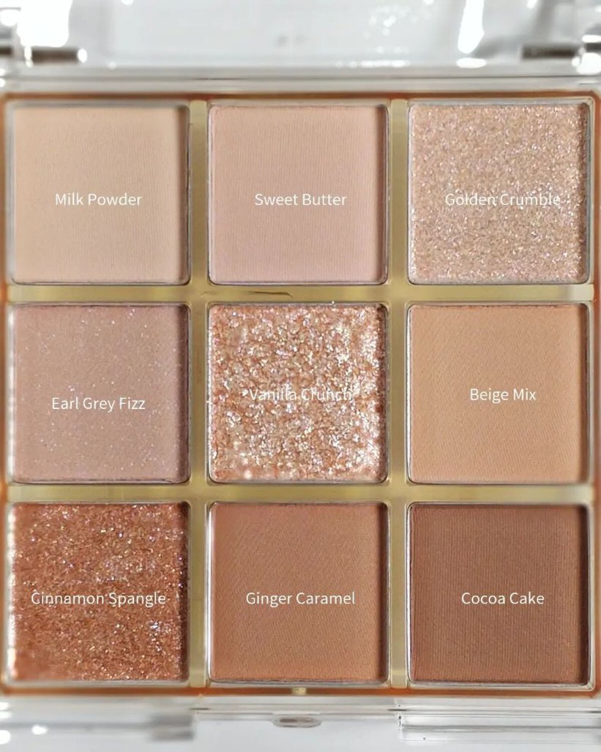 その日の雰囲気によって多彩に活用できる 9色のアイシャドウパレット✨ ミルククッキーのような柔らかいカラーを詰め込んだ、ソフトブラウン陰影カラーシャドウです。 肌なじみの良いカラーがセットされているのでどの肌トーンにも◎ ラメカラーもギラギラせず繊細でキレイです。