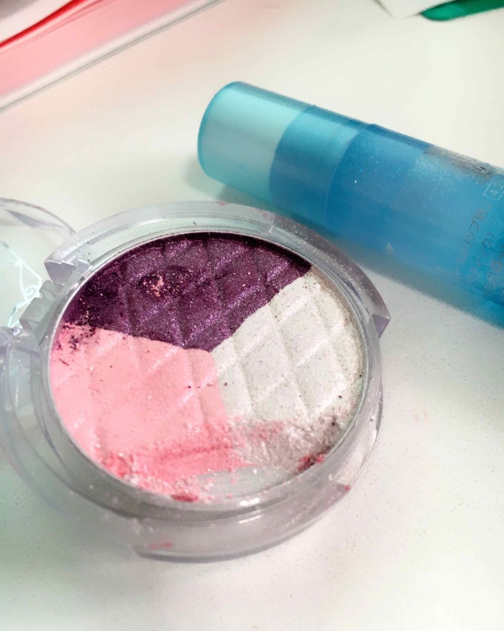 この組み合わせ凄く可愛い💞両方キャンメイクでアプリコットカラー。最初にウインクグロウアイズをうすめに瞼全体に塗る指についてる残りは涙袋に塗るのも可愛い。つぎに二重幅にベルべッティフィットカラーズいれるとこんな感じの濡れまぶた?になる。本当にオ...