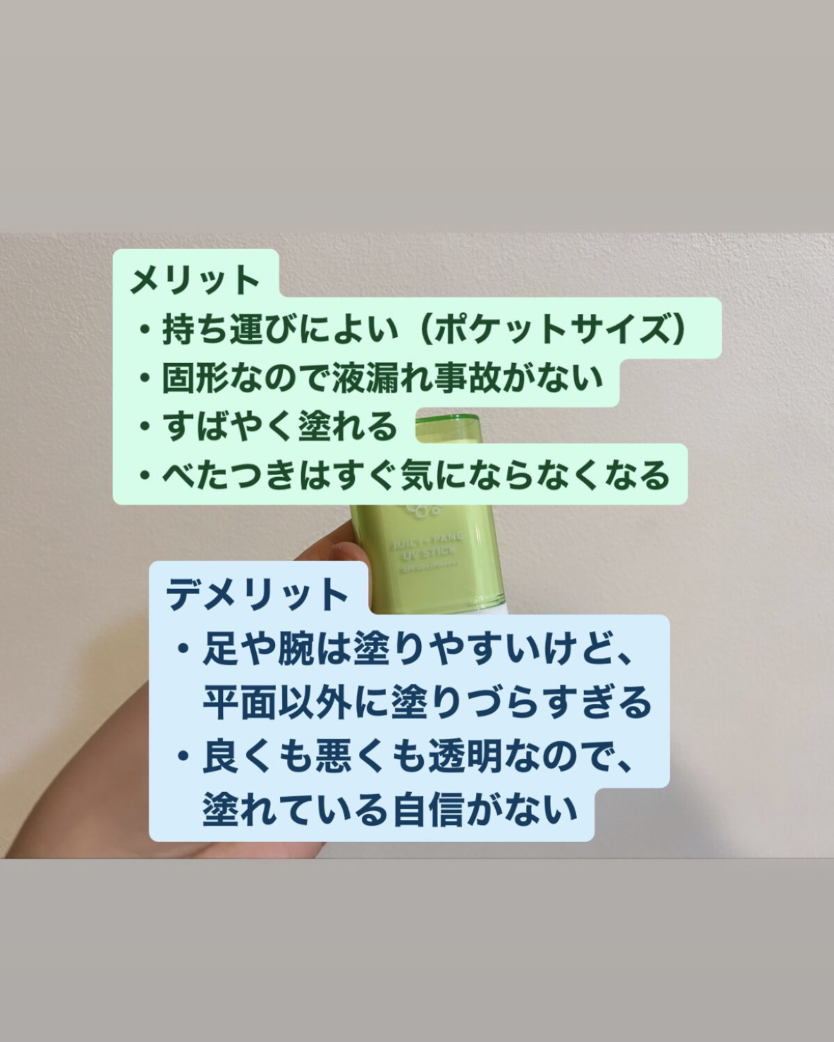 A’pieu アピュージューシーパンUVスティック GR01 マスカットバー韓国の日焼け止めです。韓国製品は今まで買ったことがなく、抵抗があったのですが、買った当時はスティックタイプの日焼け止めってまだまだ種類豊富でなかったのと、幅をとらない...