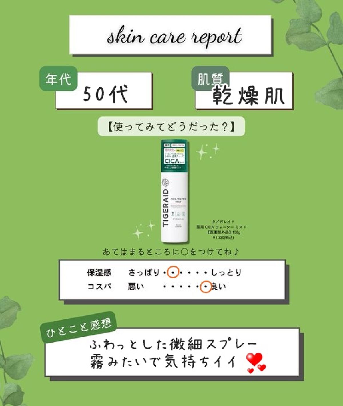 CICA×ビタミンのWケアができる、肌あれ・毛穴対策の薬用CICAミスト◎ シュッとひと吹きで、まるで霧のような極細ミストがふわっと広がってひんやり気持ち良いです。 メイクの上からも使いやすいなど感じました!