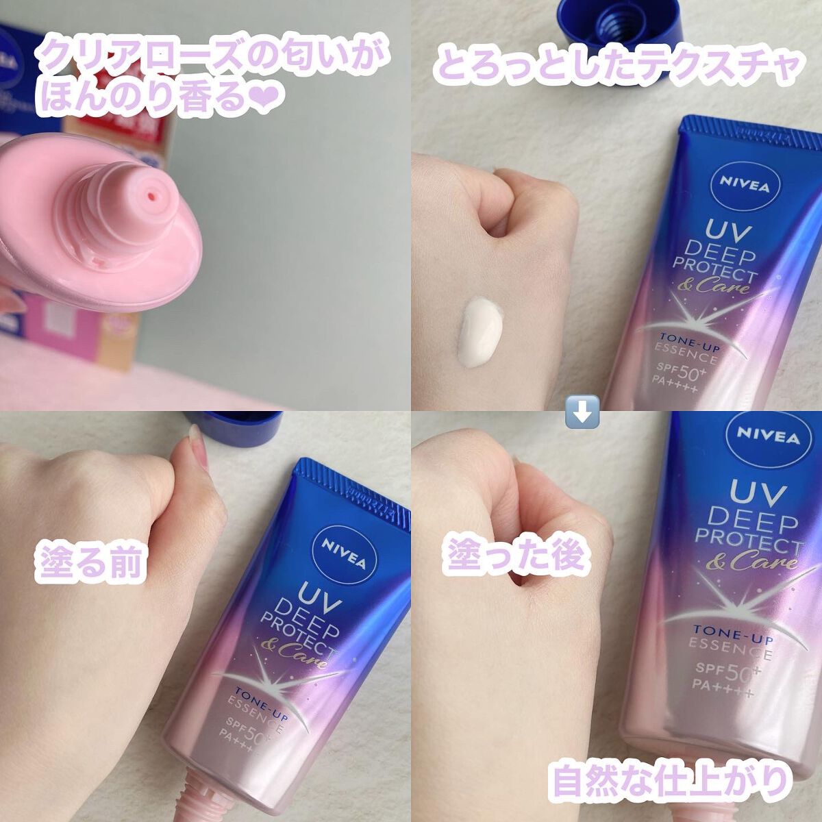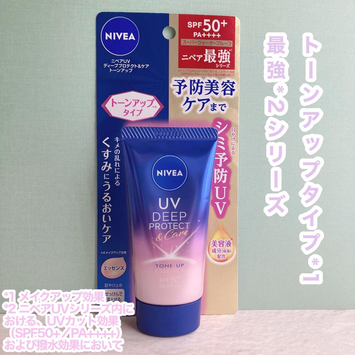 ニベアUVディーププロテクト&ケアトーンアップエッセンスニベア花王からいただきました✨SPF50+・PA++++日やけによるシミ予防*1UV。血色感をUPさせて自然に肌を明るくみせる*2トーンアップエッセンスです。主にシミの原因となるUV-B...