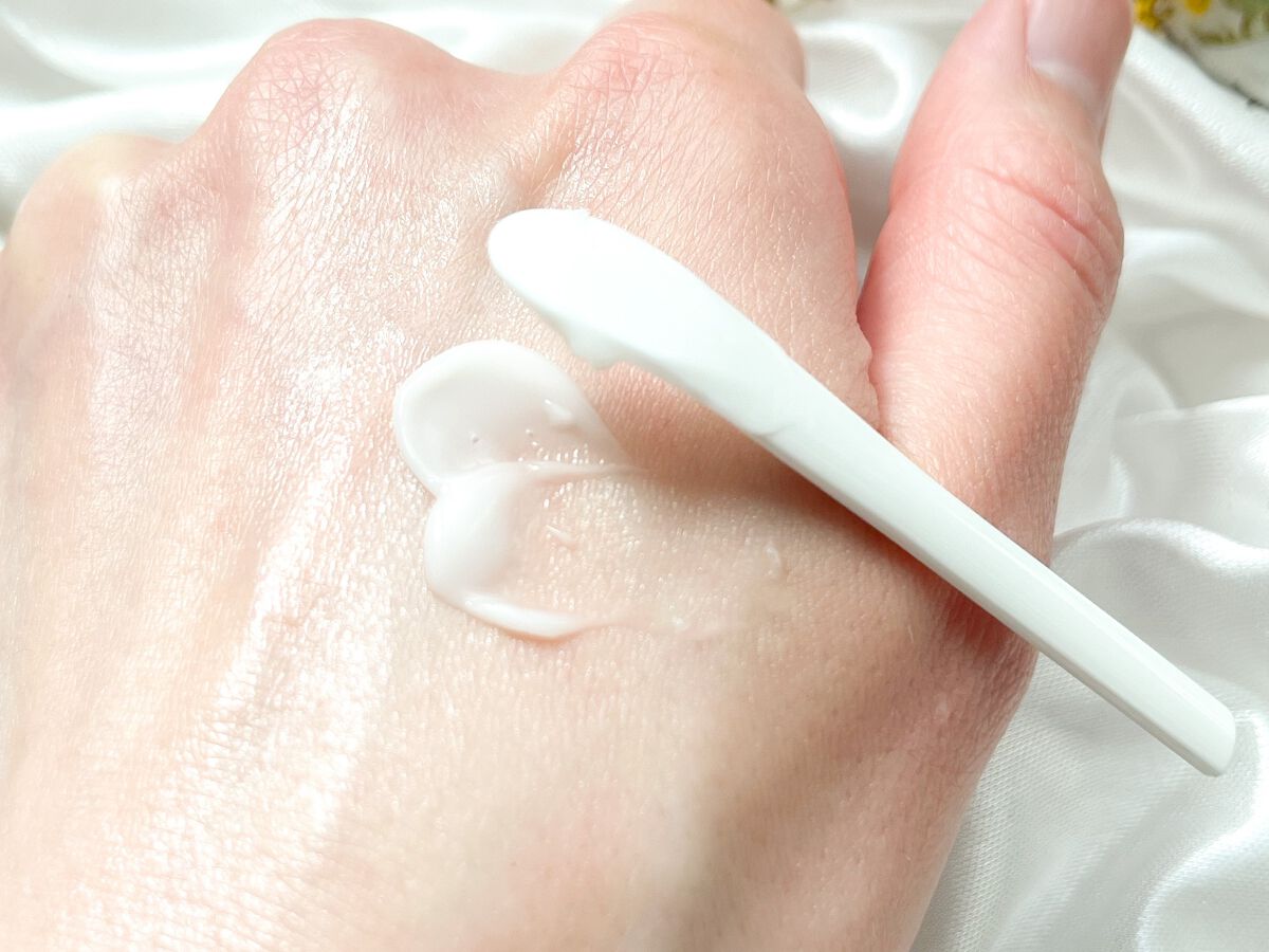 ヒト幹細胞エキスをリッチに配合し、最新の知見に基づき選りすぐりの成分を凝縮した贅沢処方のオールインワンアイテム。 吸水スフィアという、塗るとに水分を吸い込み、膨潤して年齢サインをふっくらピンッとさせる成分を配合。 砂漠地帯で“復活の木”と呼ばれる植物に存在する復活モイスチャー成分のグリセリルグルコシドも配合しています。 滑らかなクリーム。伸びがよく、馴染むととてもしっとり柔らかな感触に。ベタつきはありません。ツヤ感もアップするような使い心地でとても良かったです。