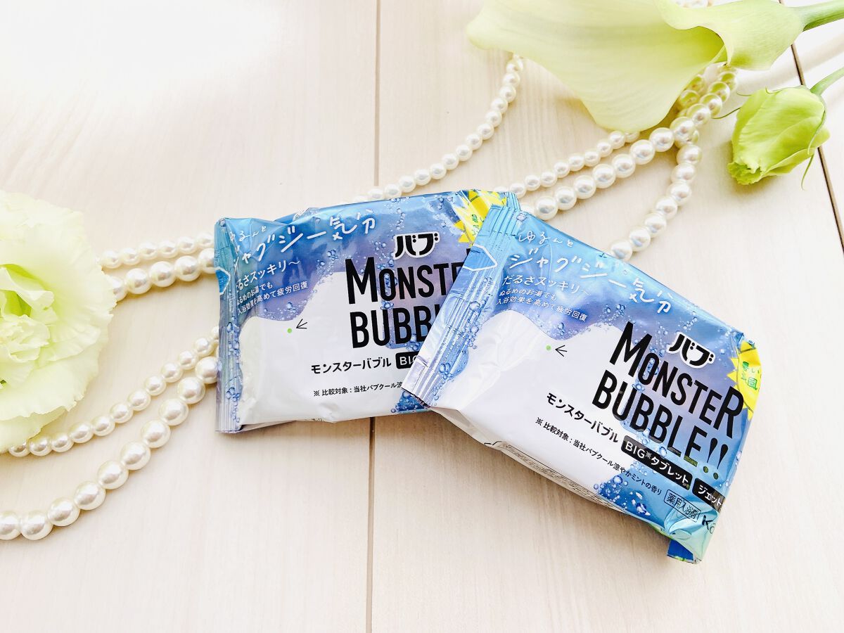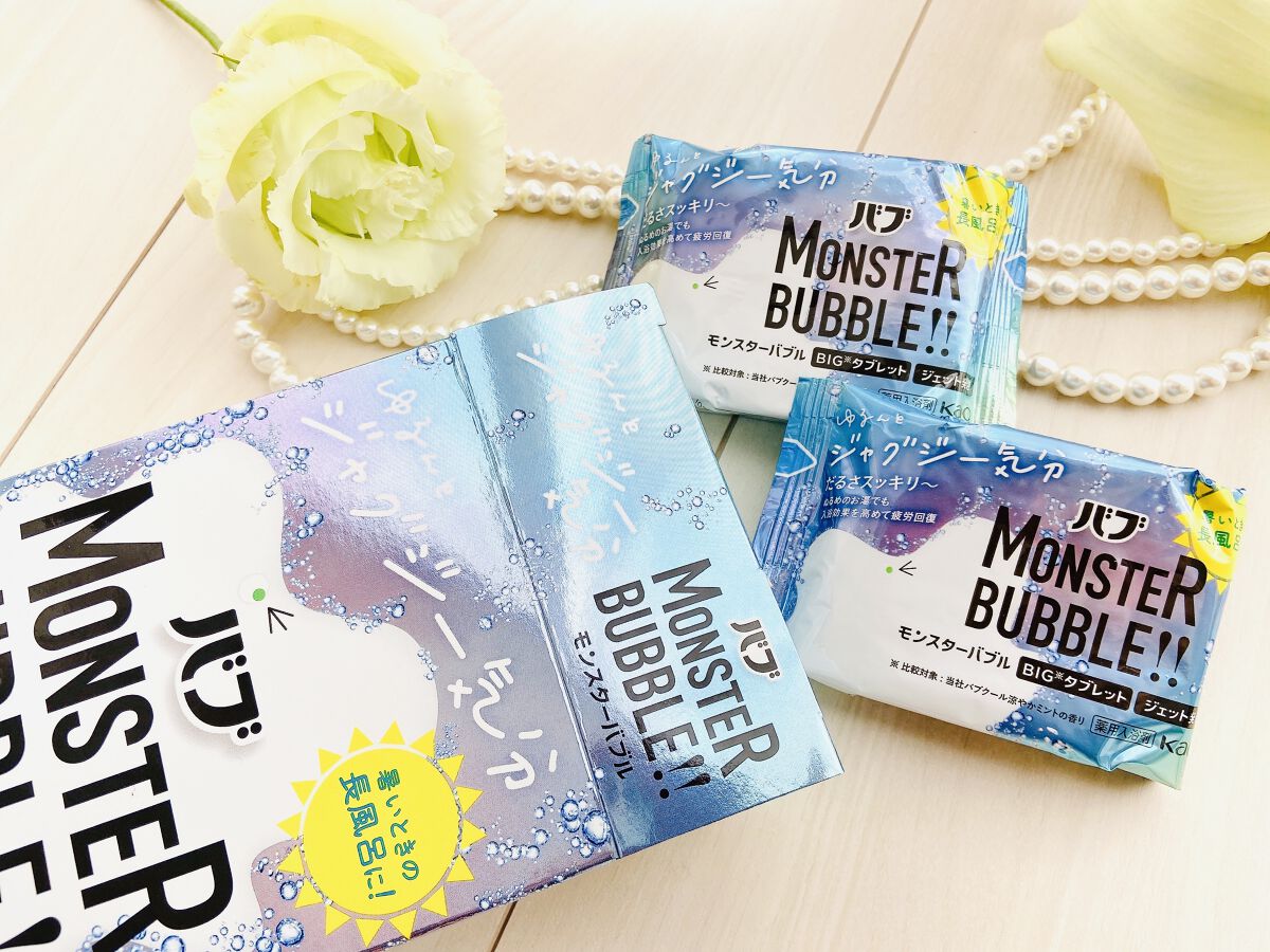 モンスターバブルから新商品が登場⭐ ぬるめのお湯でも入浴効果を高めて疲労回復、だるさスッキリ👍🏻 従来品より大きめのBIGタブレット*でジェット発泡🫧 気分さわやかハーバルレモンの香り🍋 こちらキレイなライトブルーのお湯💙 メントール入りなのでスーッとしていて夏でも長湯できる処方とのこと☺ 私湯船につかってYouTube見たりすることが多いので大活躍してくれそう✨ 夏場でも入浴剤を使えるって良い💓💓 すっごくオススメなので気になった方はぜひ購入してみてくださいね♡