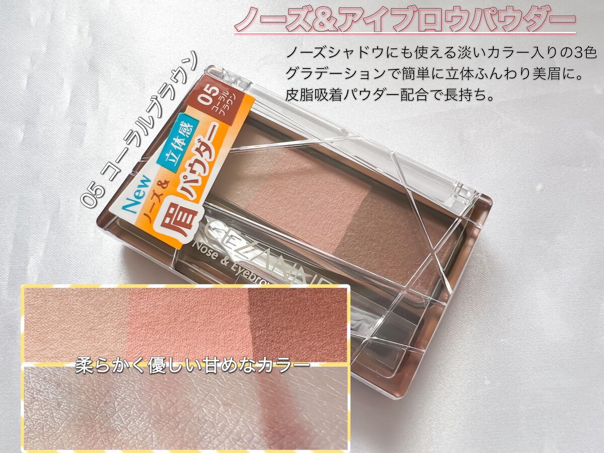 彫り深&ふんわり立体眉で目元の印象アップ。 ノーズシャドウにも使える3色グラデーションのパウダータイプ! 皮脂吸着パウダー配合で、パウダーなのに落ちにくく、ふんわり美眉が長持ち✨✨ とってもプチプラなのに高発色なのでめちゃくちゃオススメです🫶🏽