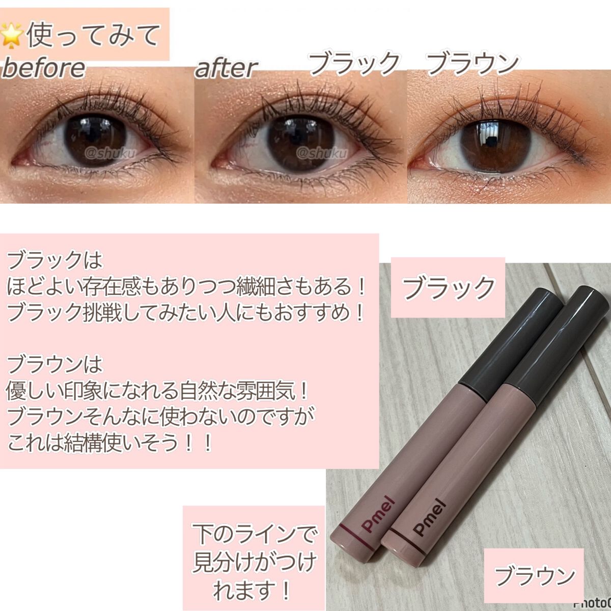 - "さっと仕込んで 私らしさ引き出す ピメルではじける あなただけの魅力"。 繊細ロング×長時間カール、まるで自まつげが伸びたみたい!"うそつきマスカラ"。 さっとひと塗りで、ナチュラルだけど目ヂカラUPを演出するまつげになじむ「透け感ブラック」。 肌馴染みが良くさらに軽やかな「透け感ブラウン」。 大人可愛い限定色「透け感モーヴピンク」。 印象的でおしゃれな限定色「透け感ナイトグリーン」。 重ねてもダマになりにくいセパレート仕上げでしっかりカールキープ。 綺麗なまつげが続く、ウォータープルーフ。