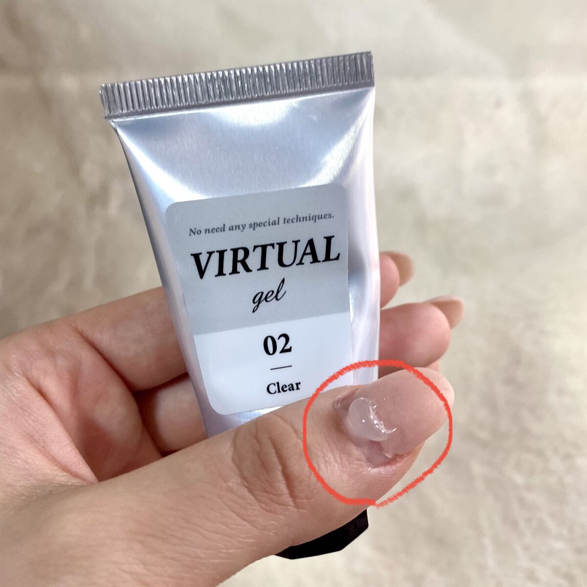 ナチュラルな長め美爪が欲しいなら!セルフで長さだしが簡単にできるバーチャルジェル💖使ってみて!LEDで硬化!刺激臭もなく、形を整えて削る時もカスが舞いにくい!スラスラと形が整えられてやすりが大変💦からも解放してくれます!載せる量で透け感は変わ...