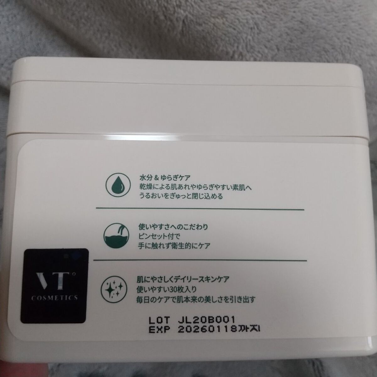 - VTのベストセラー商品がナチュラル処方になって登場。0.2mmの極薄エコフレンドリーシートが肌にやさしく密着。ツボクサ※1とローズマリー※5の肌保護、アロエ※2の肌への保湿効能が適度に 配合され、健やかな肌に導いてくれます。 ※1ツボクサエキス(整肌) ※2アロエベラ葉エキス(保湿)
