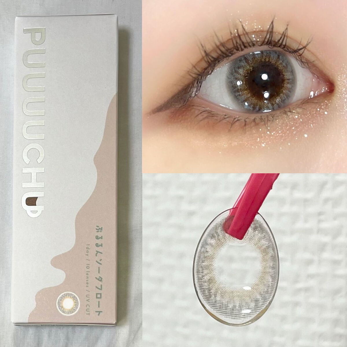 - ※2023年7月よりパッケージ底面カラー名表記部分、順次リニューアル。尚、これに係る商品の返品・交換等は承っておりません。 女の子の「かわいい」がぜーんぶ叶うよくばりなラインナップ 絶対ばぶフェイス♡ちゅるんチョコフラッペ DIA14.2mm/着色直径13.5mm 細フチ×ピュアベージュ ピュアちゅるんレンズで守りたくなっちゃうような甘めの瞳に 王道人類モテ♡ふわふわカプチーノ DIA14.5mm/着色直径13.7mm ぽんわりフチ×ふわブラウン フチふんわりシフォンブラウンレンズで優し気な瞳に 超絶盛れ地雷女子♡きゅるきゅるダークモカ DIA14.5mm/着色直径13.8mm 溶け込みグラデ×きゅるんブラック くっきり暗めカラーレンズでお人形さんみたいにくっきりとした印象の瞳に 韓国系クール美人♡ぷるるんソーダフロート DIA14.2mm/着色直径13.2mm うるうる質感×透明感ブルー うるうる透明感ブルーグレーレンズでクールビューティーな瞳に 商品名 :PUUUUCHU(プーチュ) 価格 :1,650円 税込(10枚入り) カラー :全4色 レンズ :BC8.6mm DIA14.2mm/14.5mm UVカット 含水率 :38% 使用期間 :終日装用、一日交換 度数 :0.00D(度なし),-0.50D~-6.00D(0.25D刻み),-6.50D~-10.00D(0.50D刻み) 販売名 :ワンデーツッティアルファ 承認番号 :22400BZX00427000 カラーコンタクトレンズの不適正使用による眼障害の危険性等などがあります。 ●コンタクトレンズは高度管理医療機器です。不十分な洗浄・消毒など不適切なケアや、長時間・交換期間を超えた装用により、アレルギー性結膜炎、角膜感染症、角膜潰瘍等の重篤な眼障害が発生する危険性があります ●ご使用前に取扱説明書を確認してください 使用上の留意事項 ●眼科医院等を受診してからお求めください ●眼に異常を感じたら直ちにレンズ使用を中止し、お近くの眼科等で診察を受けてください ●医師の指示にしたがってご使用ください ●コンタクトレンズを装用する場合、自覚症状がなくても、眼科医院等での定期検査を受けてください ●レンズに不具合がある場合は使用しないでください