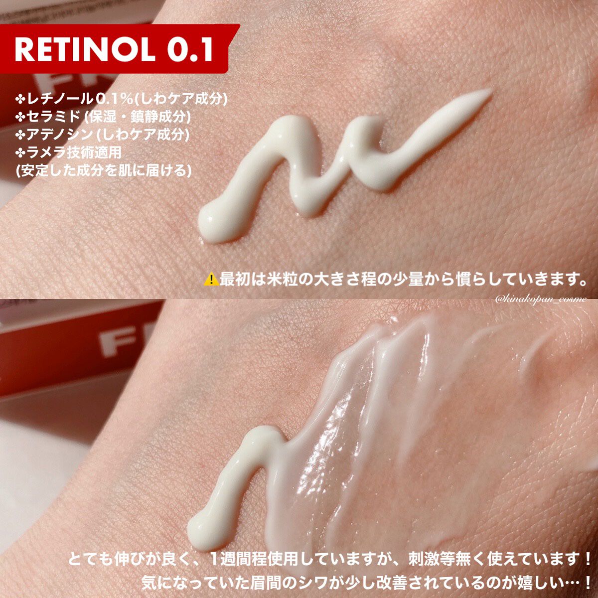 - レチノール0.1%*1とナイアシンアミド*1セラミドNP*2配合で「攻め」と「守り」のケアが1本で行えるクリーム。ハリケアやアーリーエイジングケア*3にオススメです。 *1整肌成分 *2保湿成分 *3年齢に応じたお手入れのこと