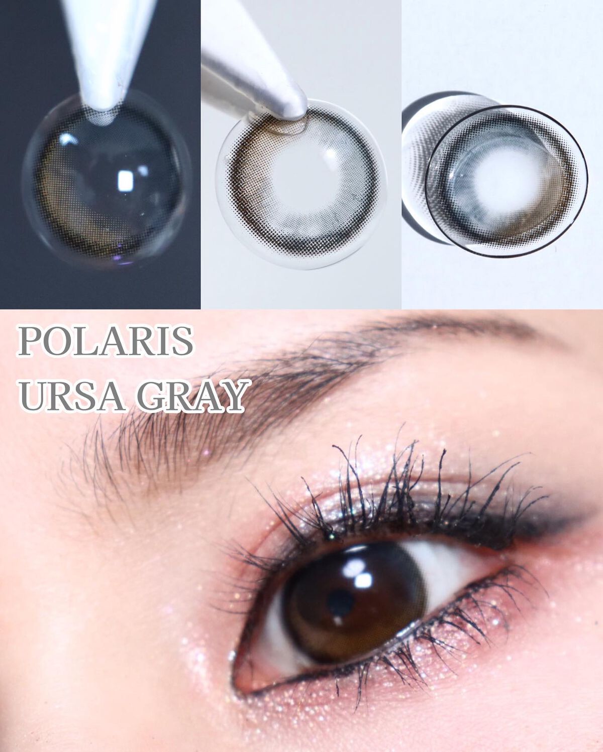 とてもかわいいラメカラコン。 こいらはICY GRAY。 グレー2種類とグリーンがあり、わたしは明るいグレーとグリーンを選択。 グリーンはあまりラメ感わからなかったのでラメラメにさせたい方はグレー系がおすすめ!