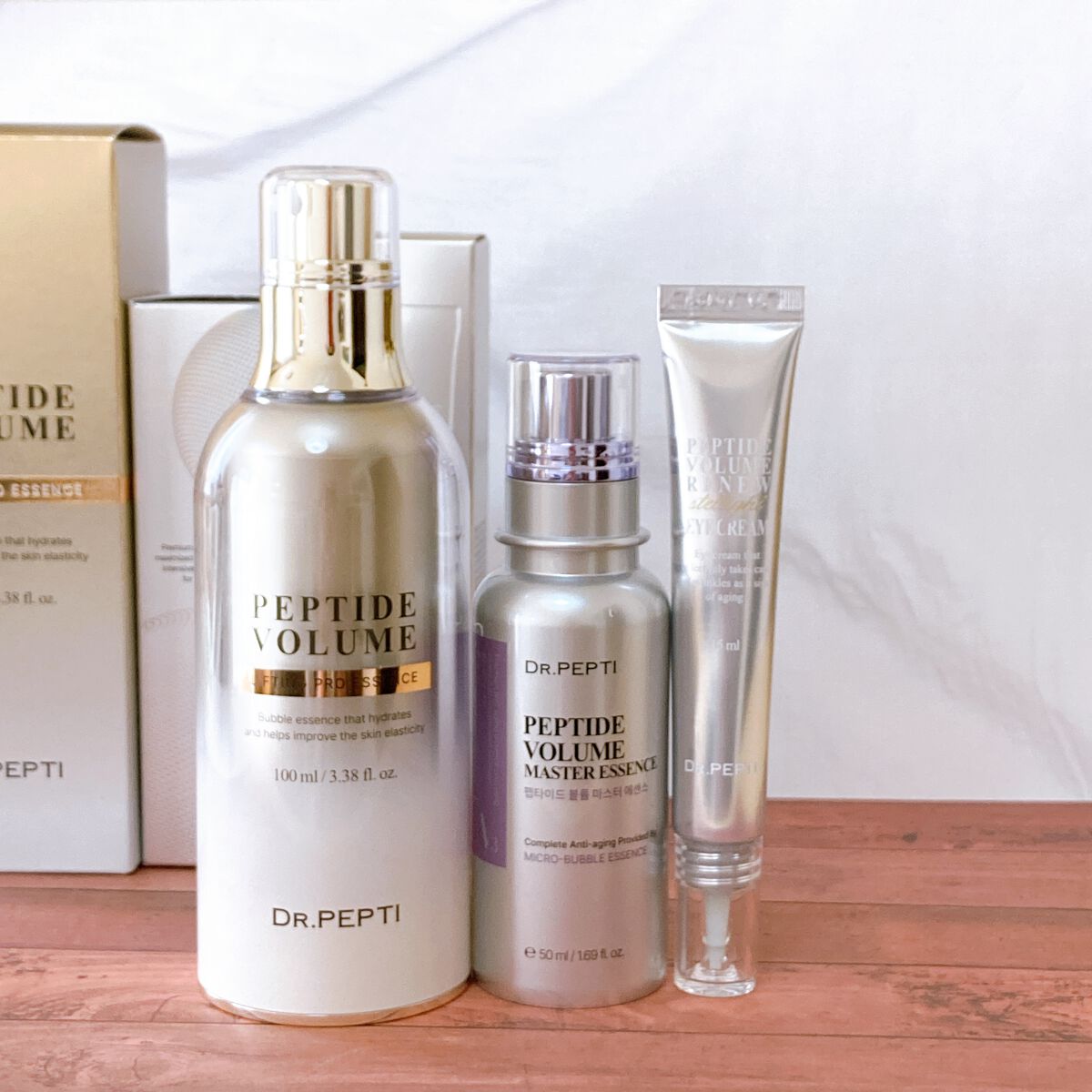 韓国スキンケアのドクターぺプチのエッセンス2種使用してみました。@dr.pepti_jp▶ペプチドボリュームマスターエッセンス(50ml)バブル美容液で、肌にのせると泡が出るエッセンスになります。トーンアップや肌ハリが気になる方におすすめ。吸...