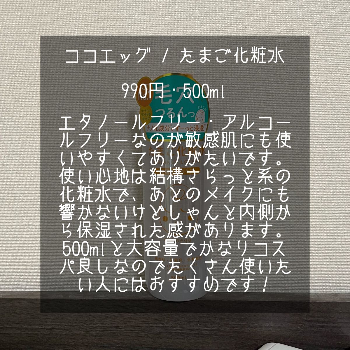 大容量でバシャバシャ使える系の化粧水なんですが、想像を超えてしっかり保湿されたのでかなりおすすめしたい大容量タイプ化粧水🥺✨ たまご化粧水って名前がかわいい🥚💓 フタが黄色でたまごを意識してるパケでしょうか🐥 テクスチャーはそんなにとろみはなくシャバシャバ系と思いきや、肌がしっとり、もっちりするかんじでかなりしっかり保湿感を感じます🤲✨