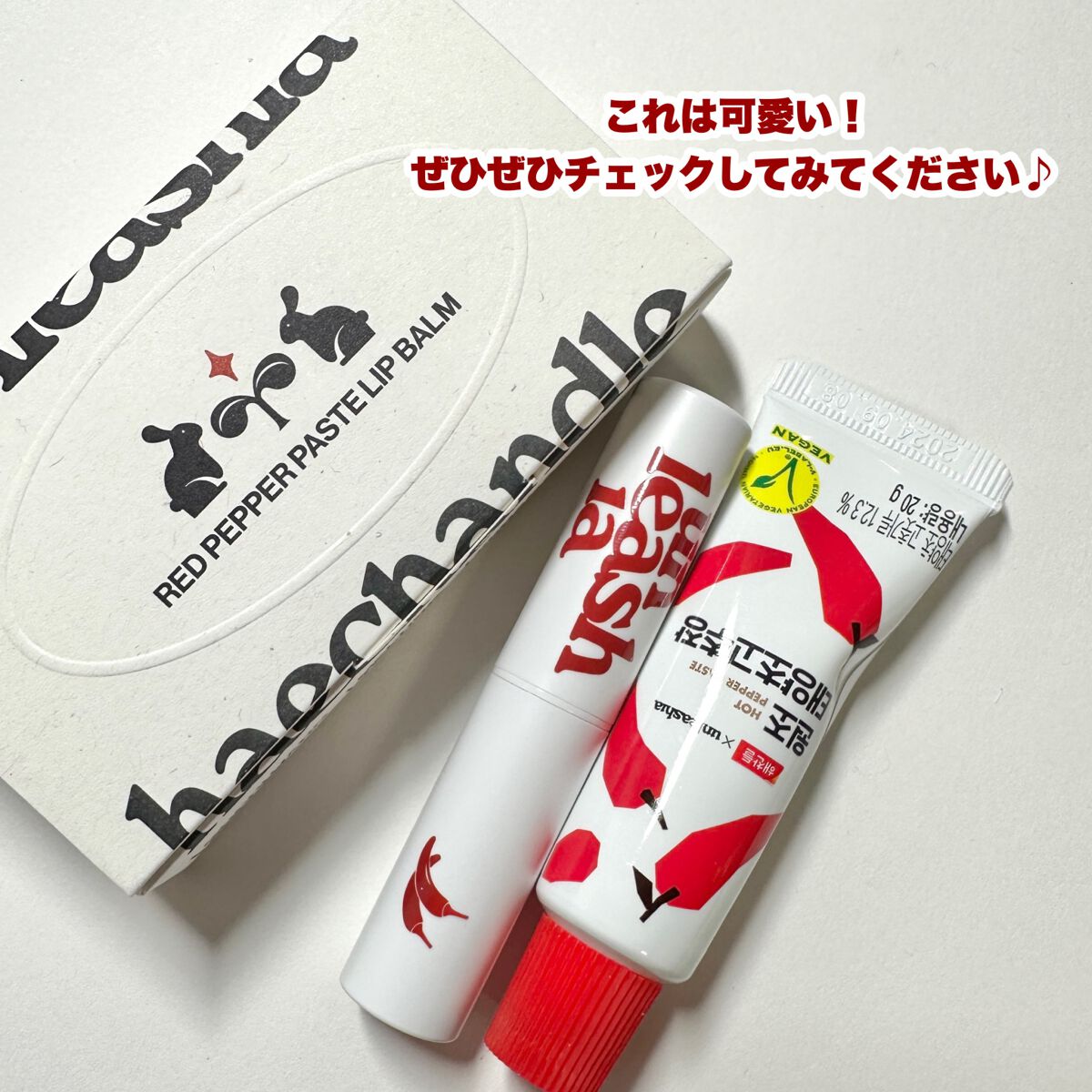 - 韓国で話題の発酵超調味料ブランドヘチャンドルとのコラボ商品。コチュジャンに含まれる材料と同じ成分が配合されたプランピングリップバーム。