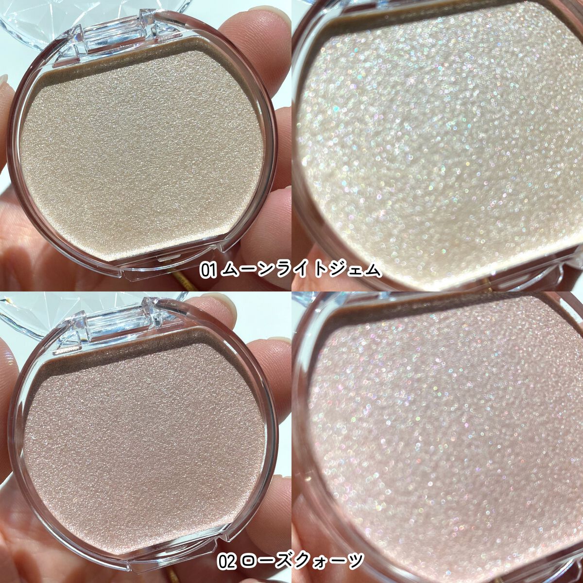 - <01 ムーンライトジェム> トリエチルヘキサノイン、合成フルオロフロゴパイト、ジメチコン、リンゴ酸ジイソステアリル、(ジメチコン/ビニルジメチコン)クロスポリマー、シリカ、スクワラン、オリーブ果実油、セラミドNP、ホホバ種子油、カニナバラ果実油、パルミチン酸レチノール、ツボクサ葉エキス、BG、マイクロクリスタリンワックス、パラフィン、トコフェロール、フェノキシエタノール、メチルパラベン、ジパルミチン酸アスコルビル、酸化チタン、酸化鉄、水酸化Al、酸化スズ <02 ローズクォーツ> トリエチルヘキサノイン、合成フルオロフロゴパイト、ジメチコン、リンゴ酸ジイソステアリル、(ジメチコン/ビニルジメチコン)クロスポリマー、シリカ、スクワラン、オリーブ果実油、セラミドNP、ホホバ種子油、カニナバラ果実油、パルミチン酸レチノール、ツボクサ葉エキス、BG、マイクロクリスタリンワックス、パラフィン、トコフェロール、フェノキシエタノール、メチルパラベン、ジパルミチン酸アスコルビル、マイカ、酸化チタン、酸化鉄、赤202、水酸化Al、酸化スズ <03 ウォームルチル> トリエチルヘキサノイン、ジメチコン、合成フルオロフロゴパイト、リンゴ酸ジイソステアリル、(ジメチコン/ビニルジメチコン)クロスポリマー、シリカ、スクワラン、オリーブ果実油、セラミドNP、ホホバ種子油、カニナバラ果実油、パルミチン酸レチノール、ツボクサ葉エキス、BG、マイクロクリスタリンワックス、パラフィン、トコフェロール、フェノキシエタノール、メチルパラベン、ジパルミチン酸アスコルビル、マイカ、酸化チタン、酸化鉄、水酸化Al、酸化スズ <04 ブルートパーズ> トリエチルヘキサノイン、ジメチコン、合成フルオロフロゴパイト、リンゴ酸ジイソステアリル、(ジメチコン/ビニルジメチコン)クロスポリマー、シリカ、スクワラン、オリーブ果実油、セラミドNP、ホホバ種子油、カニナバラ果実油、パルミチン酸レチノール、ツボクサ葉エキス、BG、マイクロクリスタリンワックス、パラフィン、トコフェロール、フェノキシエタノール、メチルパラベン、ジパルミチン酸アスコルビル、マイカ、酸化チタン、コンジョウ、グンジョウ、水酸化Al、酸化スズ