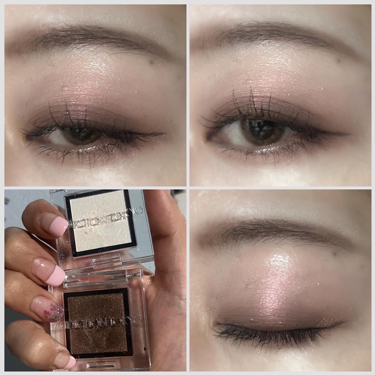 ボビイブラウンの名品ムーンストーンはベースがクリアなのでどんなアイシャドウにも合わせられるし上からトッピングするのにも向いています。 アディクションのマリアージュは2,200円でこの煌めき! 一番安いのに一番輝く、さすがです。 秋蛍は実はトッピングするとベースのシャドウを殺してしまうので目頭、下瞼などポイント使いかベースに使うのがおすすめです。