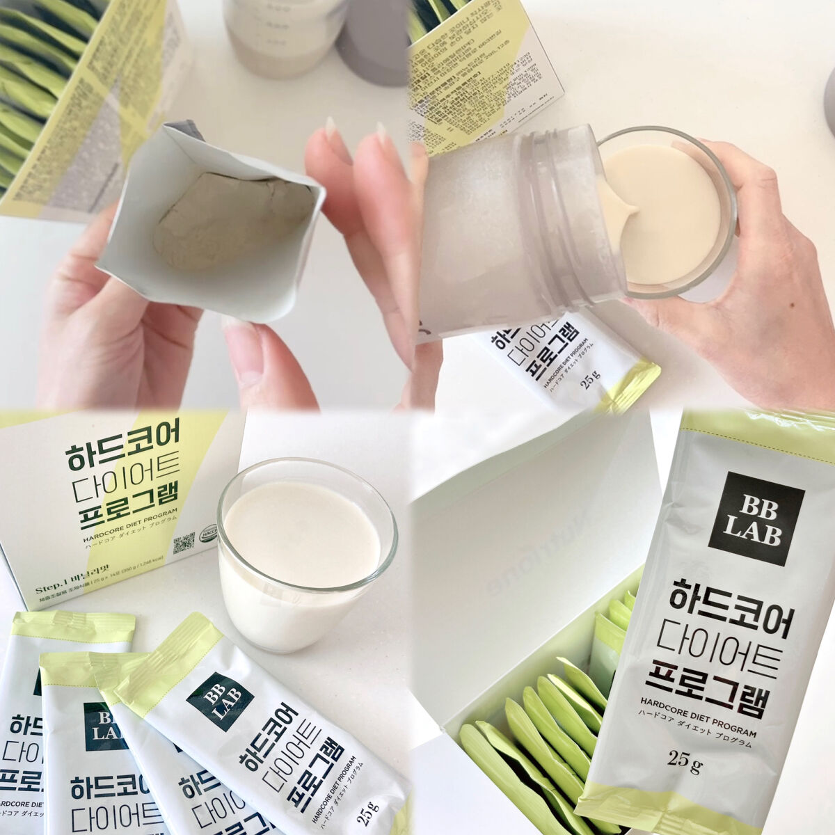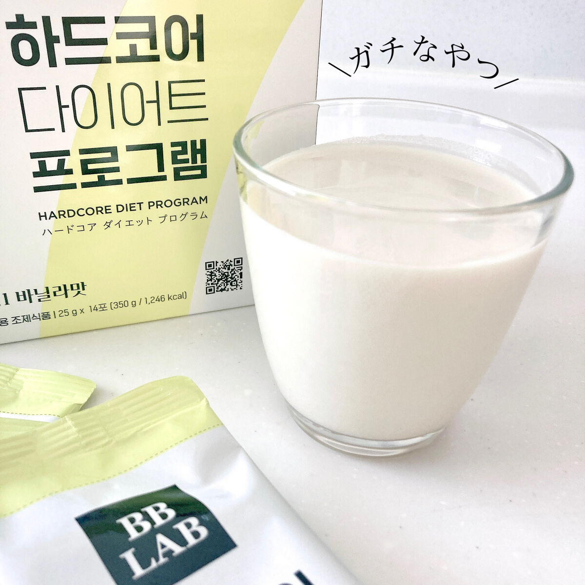 【体重調節用調整食品】体重を減少、または増加したい人のために食事の代わりに摂取できるように必要な栄養成分を加減した特殊栄養食品1日2回、ご飯の代わりに摂取♡自分のルーティンに合わせたダイエットが可能♪ハードコアダイエットプログラムは、1回の摂取220-240kcalと低カロリー♡消化しやすい植物性トリプルプロテイン 15g 配合♡・分離大豆タンパク・エンドウ豆タンパク・米タンパク食物繊維配合♡不溶性・水溶性食物繊維を同時に摂取♡♡ 飲み方も簡単.ᐟ.ᐟ.ᐟ牛乳or豆乳 200ml とハードコアダイエットプログラムをシェイク シェイク(ง ′ω′)ว♪サラサラパウダーのため、ダマになりにくくまろやかで喉通りも良く飲みやすい♡♡ 1食たったの3分!!忙しい日常生活手軽にダイエットができちゃう♡♡