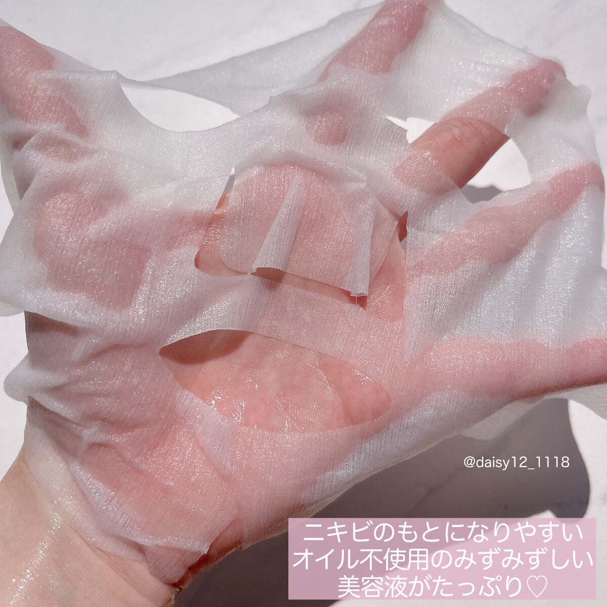 ニキビ・肌あれを徹底ケア ニキビのもとになりやすいオイル不使用のみずみずしい美容液。 密着力も高く、剥がれにくい! シートマスク自体は切り込みなどは最低限で顔に貼りやすかったし密着力もありますが 即効性はなくまだニキビはあります 残念ですが期待を上回ることはなかったです🥲