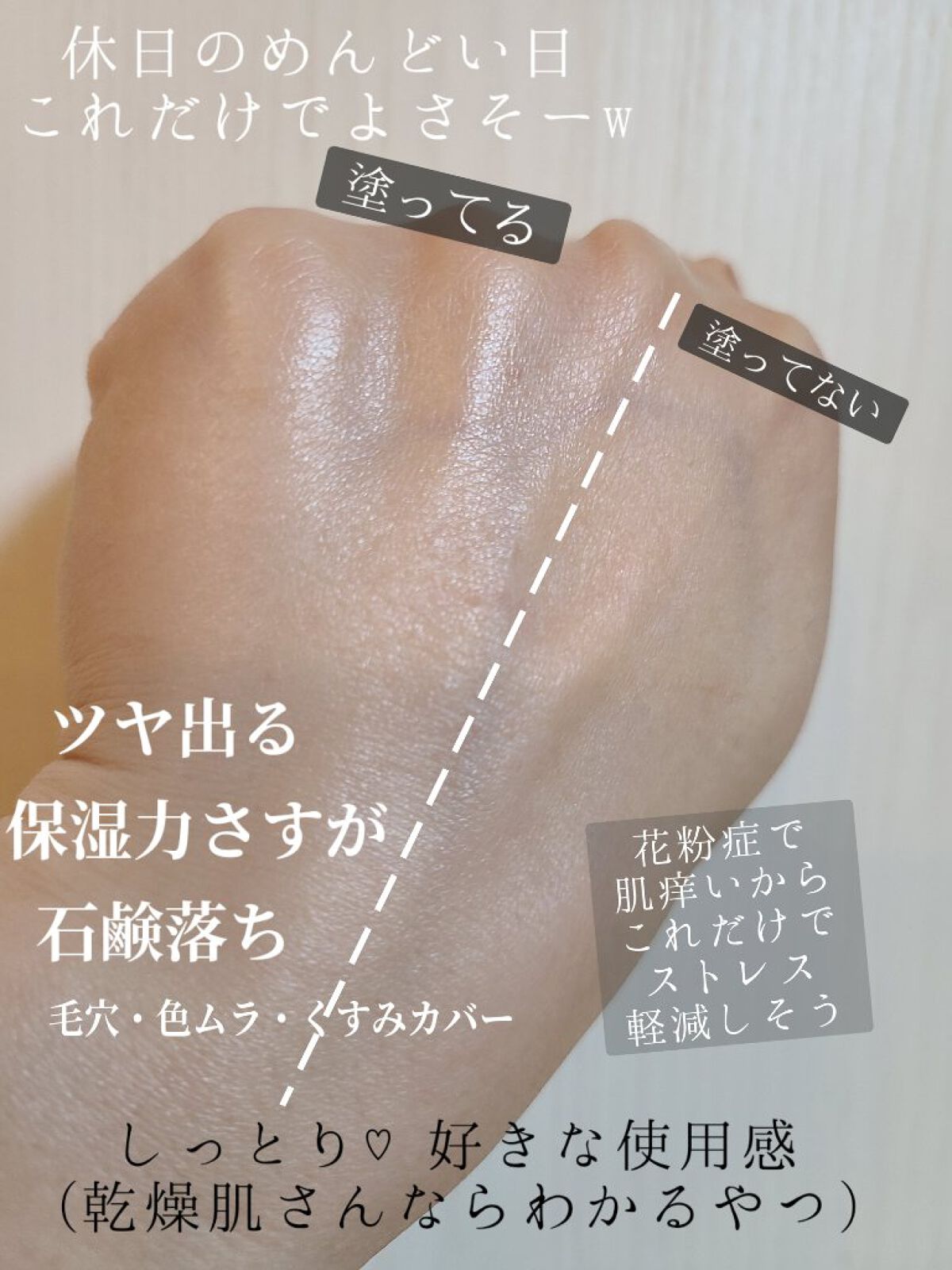 乾燥肌さんにおすすめと聞いて初夏頃に買いました。 春夏など皮脂が出る季節は保湿力スキンケア下地 カバータイプ+ファンデーション+オイルブロックパウダー 保湿力が最強だし、手持ちのファンデやパウダーと合わせて使えているので大満足です☺️