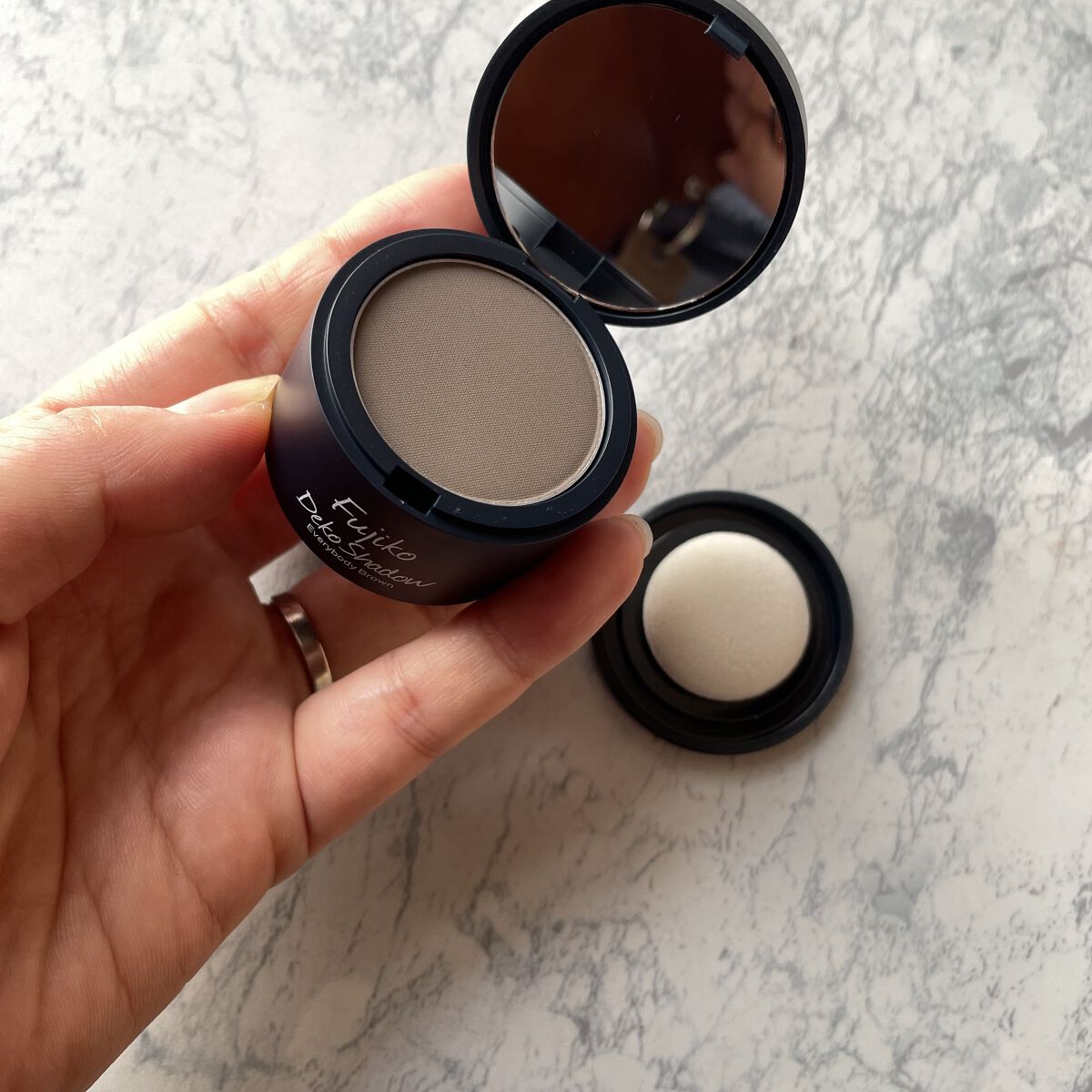 毎日メイクに欠かせないFujikoフジコdekoシャドウ¥1,870顔面短縮に劇的効果あり◎程よい色づきで、下のパフにとってかけるので手も汚れず楽ちん!シェーディングよりも色が濃いので、シェーディングよりも攻めて髪の生え際に増毛した感じにでき...