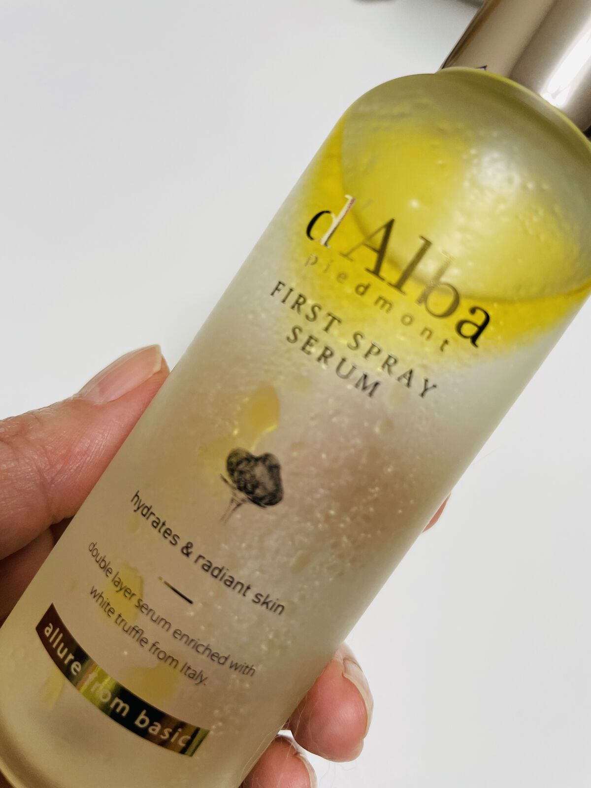 BeautyMeets企画でいただきました☘️ダルバホワイトトリュフ ファーストスプレーセラムです🧡スプレーの部分がゴールドで高級感があるボトルに入っています✨2層になっていて、上の方が黄色です。使う直前に振ってからスプレーしますよ。とっても...