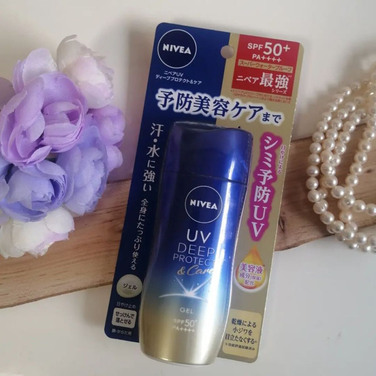 ✽✽ニベアUVディーププロテクト&ケアジェル✽✽*ニベア花王からいただきました*リニューアル発売💕新日やけによるシミ予防*1UV全身にたっぷり使える、のびの良いジェルです✨ニベア最強*2のUVカット効果(SPF50+/PA++++)と撥水効果...