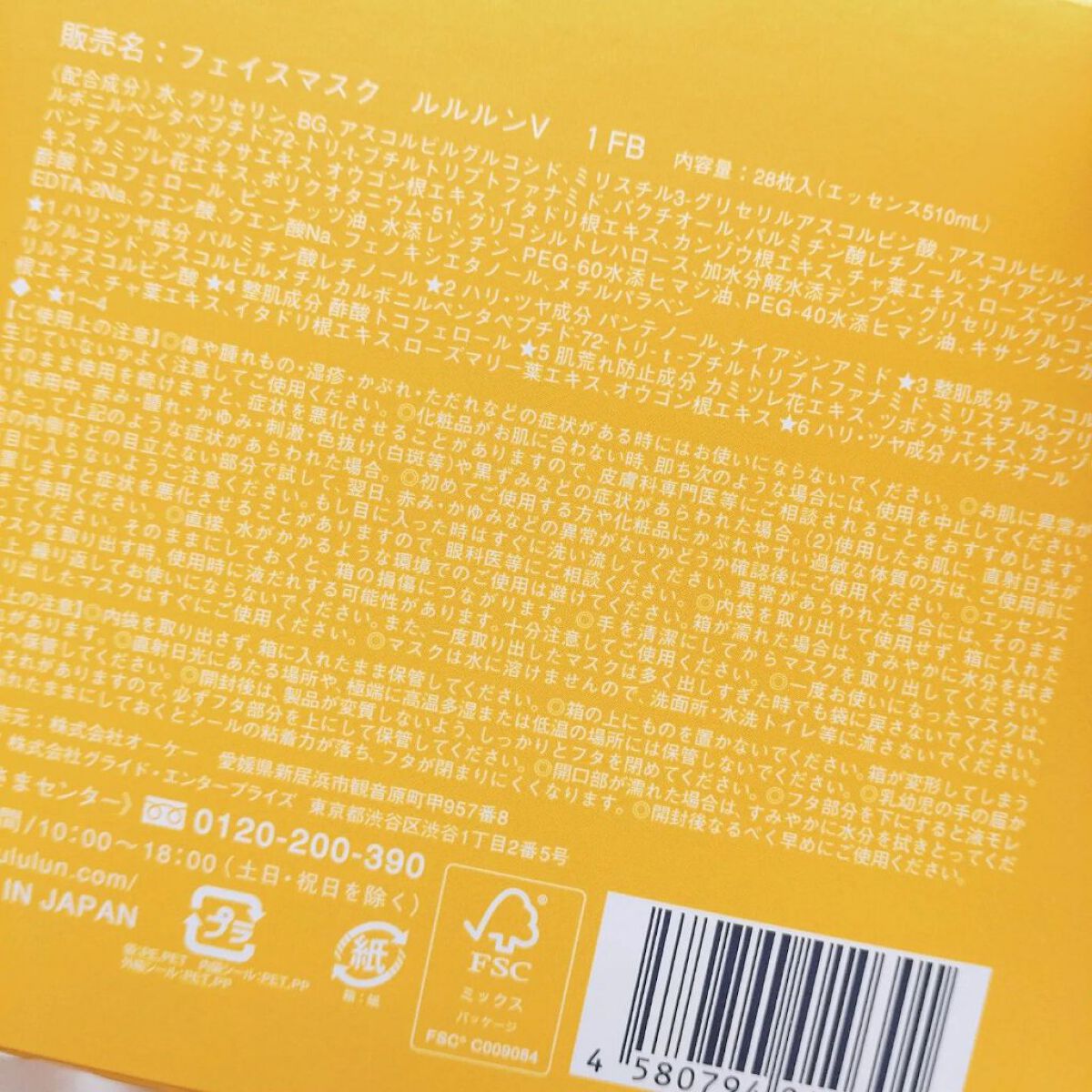 - ルルルンからビタミンたっぷりの化粧水フェイスマスクが新登場。 7種類のビタミン※1と7種類のハーブ※1で肌全体を素早くケア&集中肌メンテナンス。 新開発のフェイスラインに密着するシートで肌を引き締めながら肌のすみずみ※2までうるおいで満たし、毛穴の目立たないうるおいたっぷりの“水光肌”へ。 (※1 全て保湿成分として ※2 角質層まで)