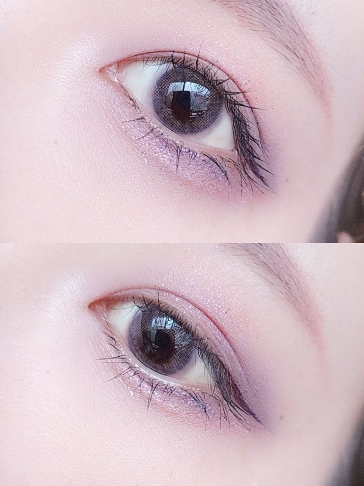私が選んだ【バイオレット】は、瞳にじゅわっと馴染む透明感の溢れる色味だよ(∩^o^)⊃━☆゚.*。+ イエロー・ブラウン・バイオレットの3色が重なって、多彩な色彩が表現されてる💜💛🤎 暗めの場所ではバイオレット感があまり出なくて、日向とか光がよく目に入る場所だと存在感が増す◎