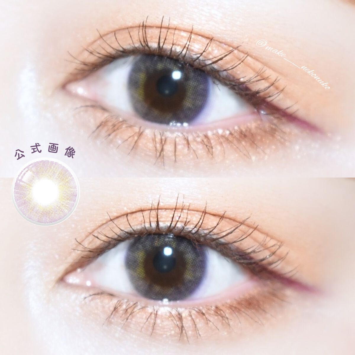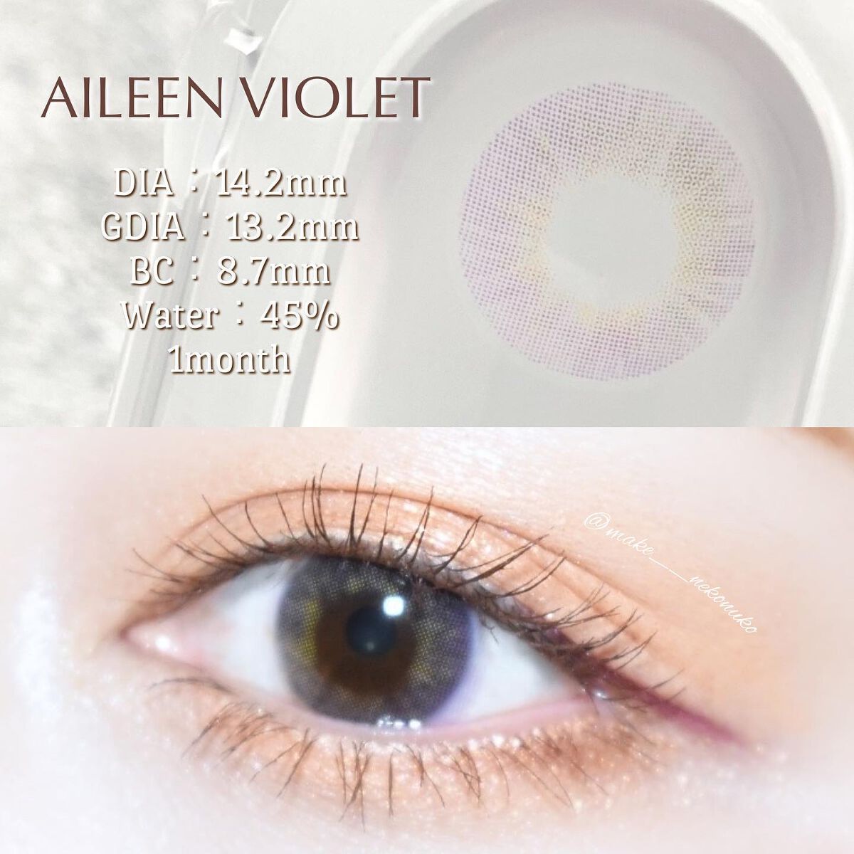 私が選んだ【バイオレット】は、瞳にじゅわっと馴染む透明感の溢れる色味だよ(∩^o^)⊃━☆゚.*。+ イエロー・ブラウン・バイオレットの3色が重なって、多彩な色彩が表現されてる💜💛🤎 暗めの場所ではバイオレット感があまり出なくて、日向とか光がよく目に入る場所だと存在感が増す◎