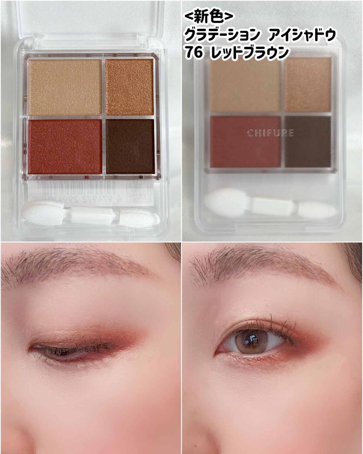 こんにちは!ちふれPRです✨この度…この度…キラキラ単色アイシャドウ「シングルカラーアイシャドウ」に限定色が登場しました✨<商品情報>シングルカラーアイシャドウ価格:各770円(税込)/全9色(限定色1色含む)限定色:710ブラウン系 (20...