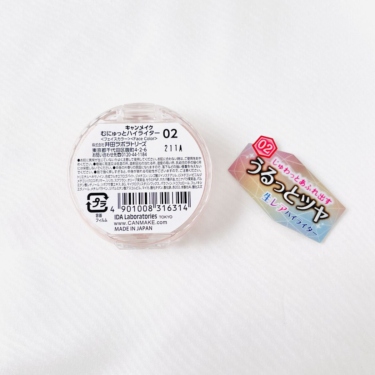 キャンメイクむにゅっとハイライター02ローズクォーツ¥638キャンメイクから出てるハイライトで、すごく柔らかい。ほんとに、むにゅっとしてる。クリームハイライトで名前の通りむにゅっとした質感だけど、塗るとサラサラに。ピンクがかったパールがとても...